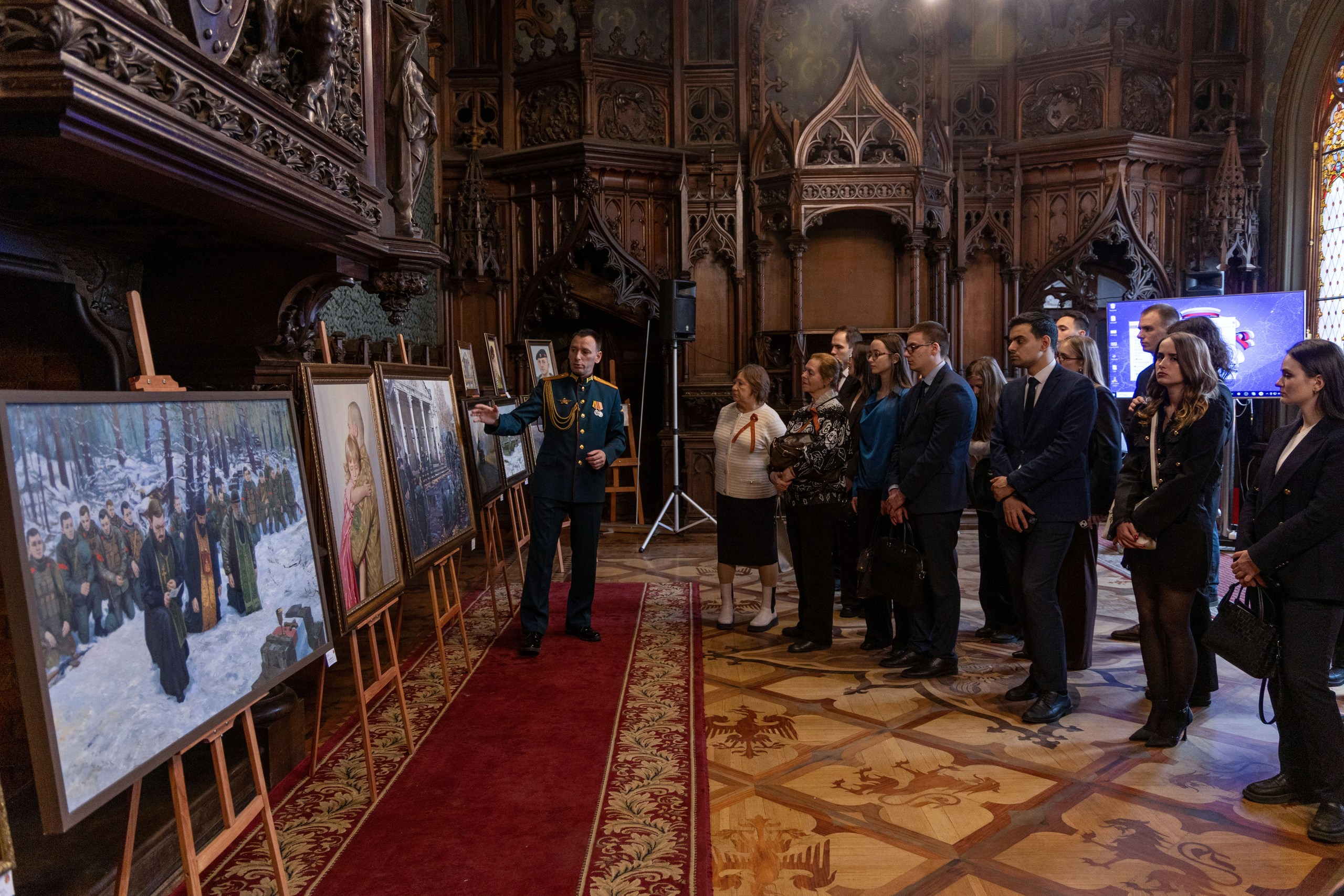 В интерьерах готического зала особняка, являющегося уникальным памятником архитектуры поздней эклектики, культурным наследием федерального значения, мероприятие открыла экскурсия участника специальной военной операции, ветерана боевых действий, члена-корреспондента Российской Академии художеств, члена Общероссийской общественной организации «Творческий союз художников России» и Союза художников России Юрия Сивачева в рамках персональной выставки «Герои нашего времени». Сивачев Юрий Евгеньевич награжден медалями Минобороны России «Художник Греков», «За воинскую доблесть» II степени, медалью Российской академии художеств «Достойному» и медалью Творческого союза художников России за вклад в отечественное изобразительное искусство, а также благодарностью Генерального прокурора Российской Федерации.