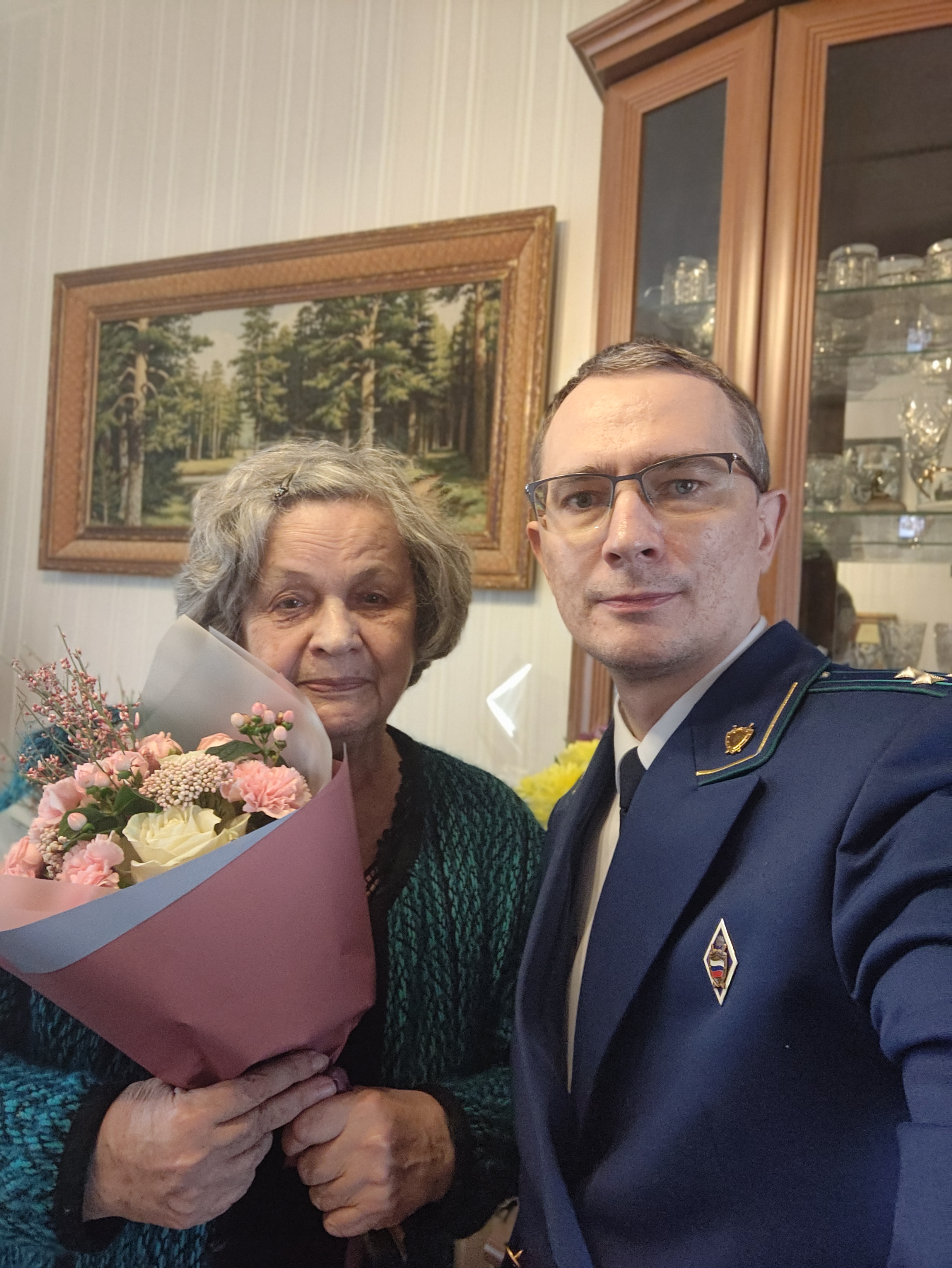 По поручению прокурора г. Санкт-Петербурга Виктора Мельника прокурор Центрального района г. Санкт-Петербурга Игорь Ивкин поздравил с 85-летним юбилеем ветерана надзорного ведомства Валентину Александровну Ракута.