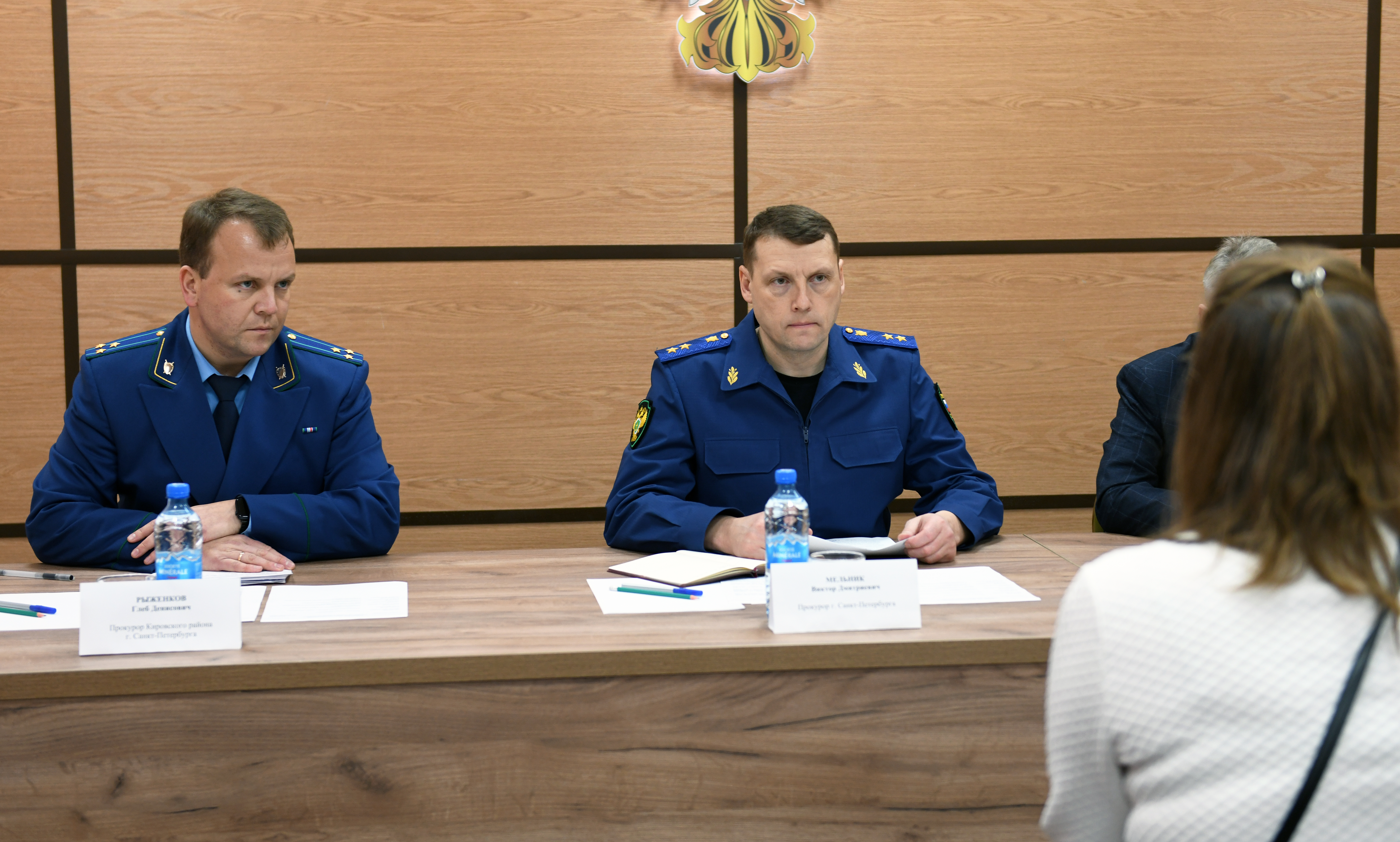 Мероприятие состоялось в прокуратуре Кировского района г. Санкт-Петербурга при участии прокурора района Глеба Рыженкова, а также главы администрации района и сотрудников территориального органа внутренних дел.