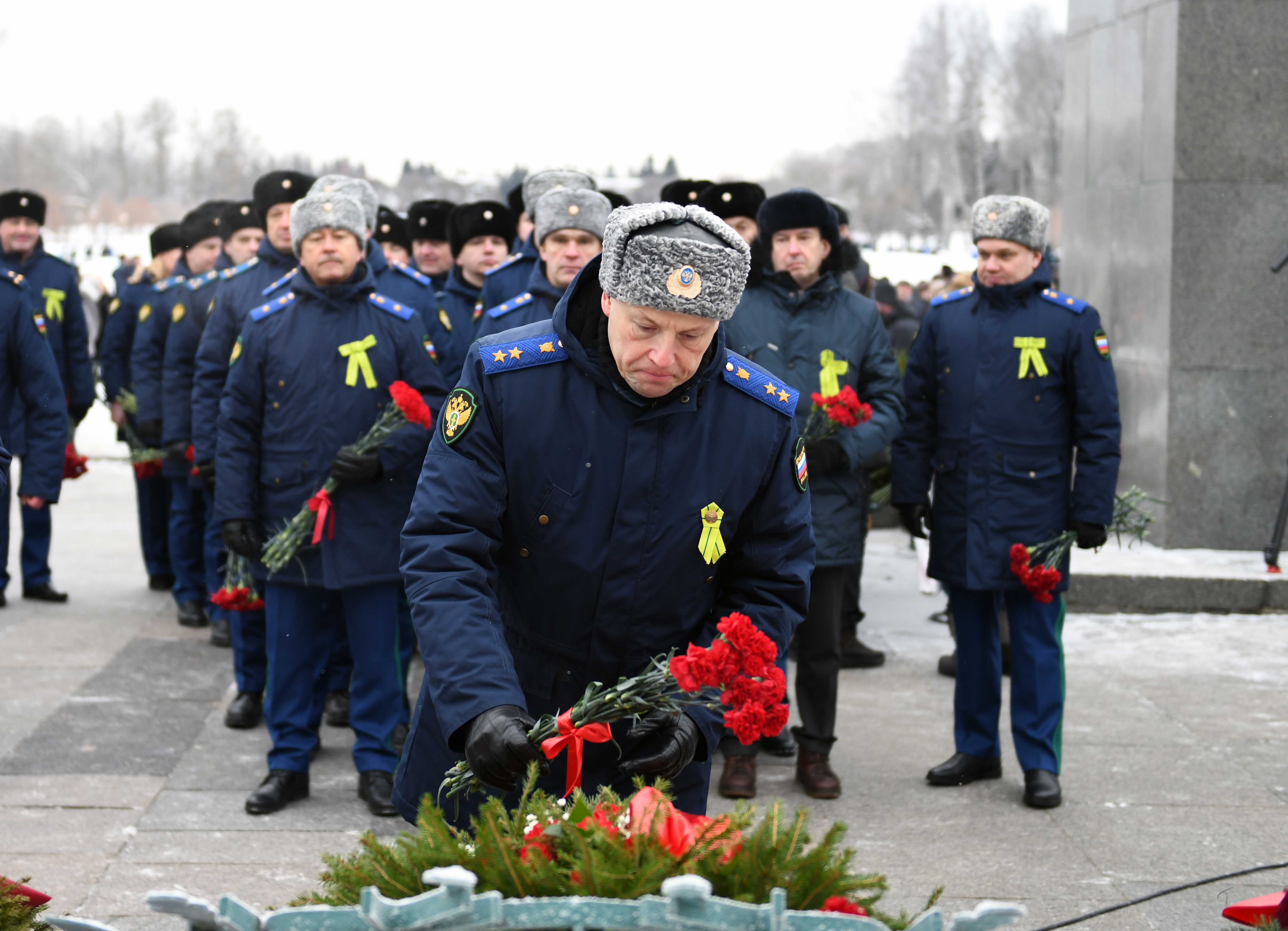 Венки и цветы к монументу «Мать-Родина», почтив память погибших, возложили прокурор г. Санкт-Петербурга Виктор Мельник, Северо-Западный транспортный прокурор Владимир Владимиров, военный прокурор Ленинградского военного округа Алексей Найда, руководство прокуратуры Ленинградской области, представители Санкт-Петербургского юридического института (филиала) Университета прокуратуры Российской Федерации, заместители прокурора г. Санкт-Петербурга, работники органов прокуратуры города, ветераны и пенсионеры надзорного ведомства.