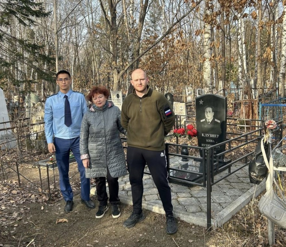 В дни памяти на городском кладбище с председателем Совета ветеранов и пенсионеров органов прокуратуры Еврейской автономной области Галиной Кирилловой работники прокуратуры г.Биробиджана провели работы по благоустройству места захоронения ветерана войны Клузнера Кивы Нухимовича.