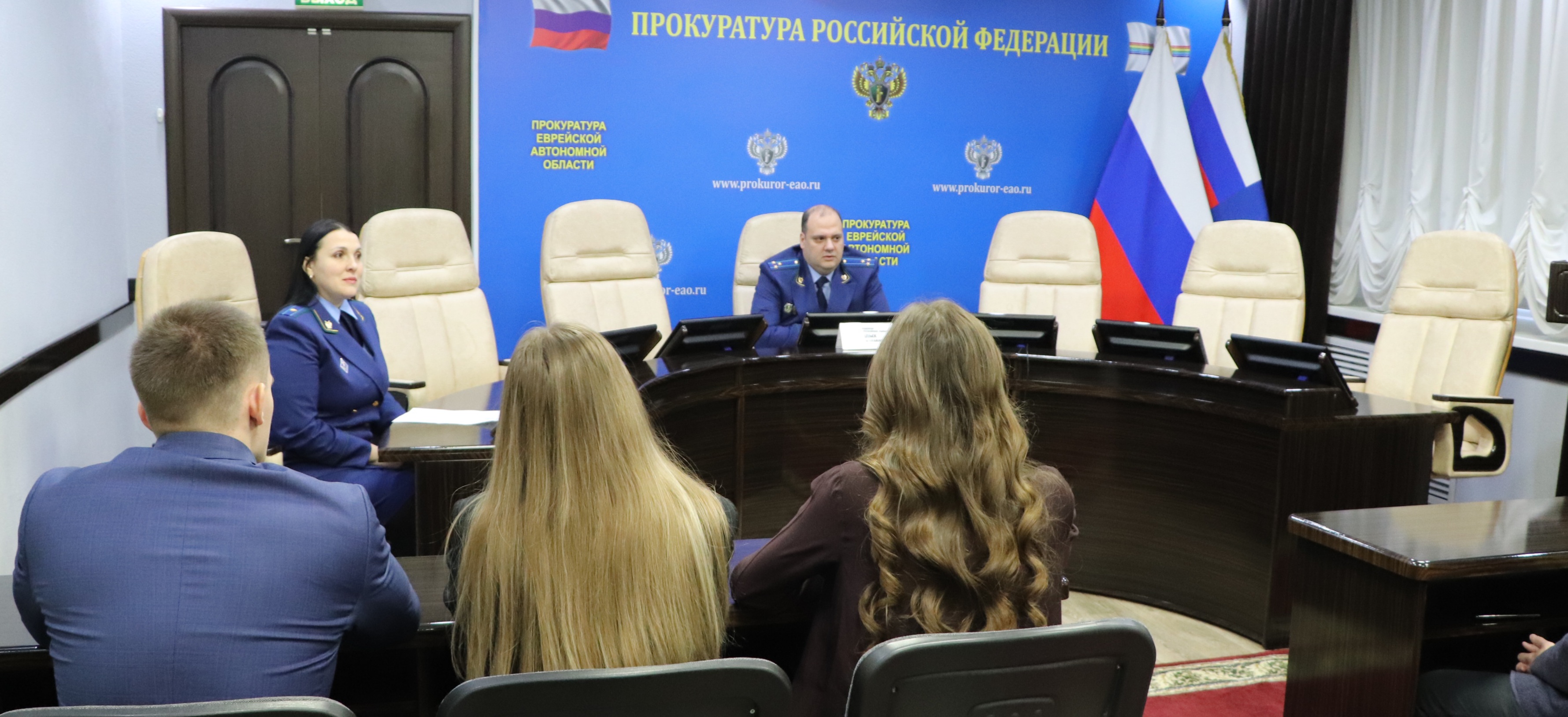 Прокурор Еврейской автономной области Дмитрий Седых провел встречу со студентами Дальневосточного юридического института (филиала) Университета прокуратуры Российской Федерации, которые обучаются по направлениям прокуратуры области по специальности «Судебная и прокурорская деятельность».