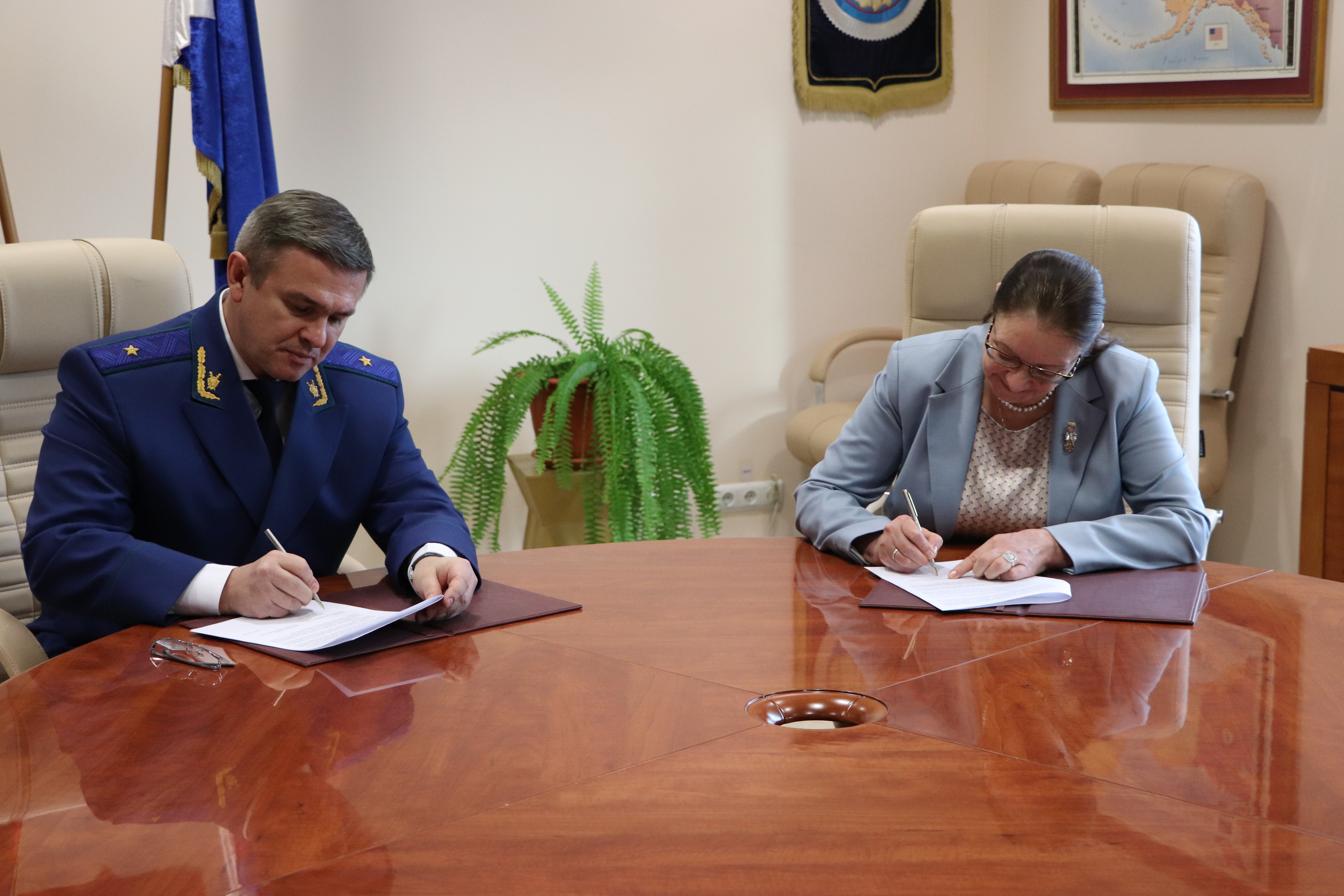Сегодня, 20.02.2023 прокурор Дмитрий Бурко и председатель региональной Думы Валентина Рудченко заключили соглашение о взаимодействии и сотрудничестве в сфере нормотворчества.