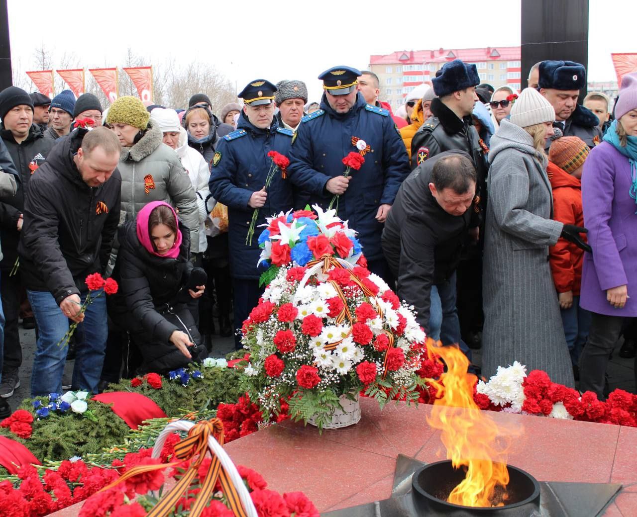 В преддверии юбилея Великой Победы у Мемориала Славы сотрудники прокуратуры г. Лабытнанги и Ямало-Ненецкий прокурор по надзору за исполнением законов в исправительных учреждениях возложили цветы к Вечному огню.