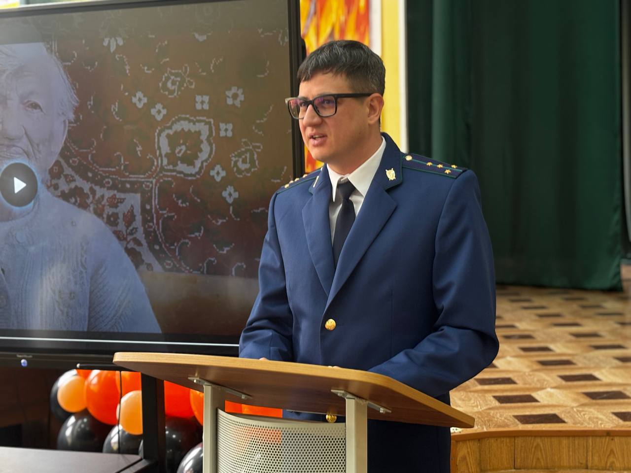 В своих выступлениях представители надзорного ведомства рассказали о деятельности прокуратуры в период Великой Отечественной войны, об участии прокуратуры СССР в Нюрнбергском процессе и его итогах, поздравили старшеклассников с грядущим юбилейным праздником Днём Победы.