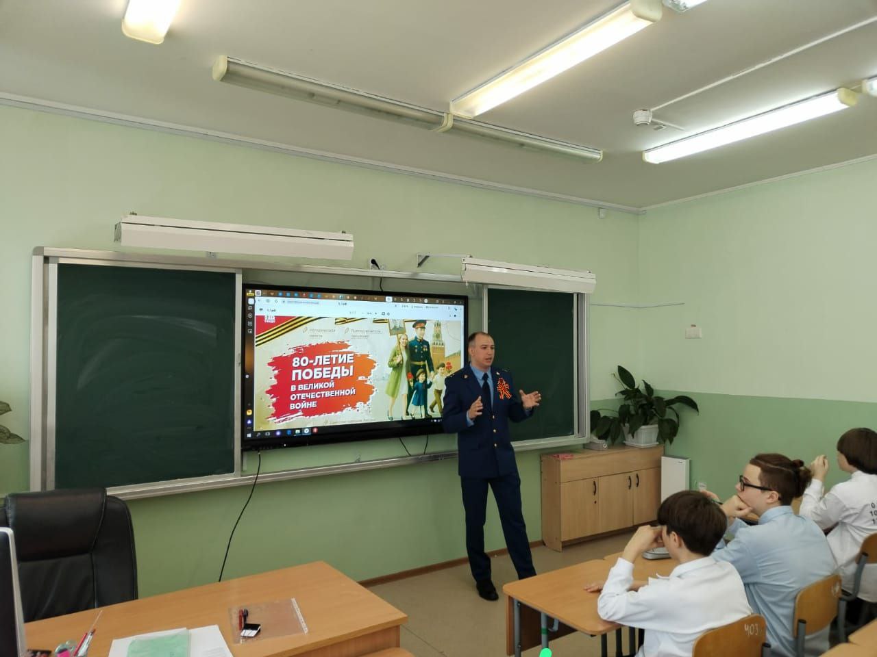 Перед учащимися школ Надыма на уроках «Разговоры о важном», посвященных Победе в Великой Отечественной войне, выступили заместитель городского прокурора Владимир Якунин, старший помощник городского прокурора Игорь Кулигин, помощники Ключарева Анна, Патлатюк Дарья и Патлатюк Кирилл.