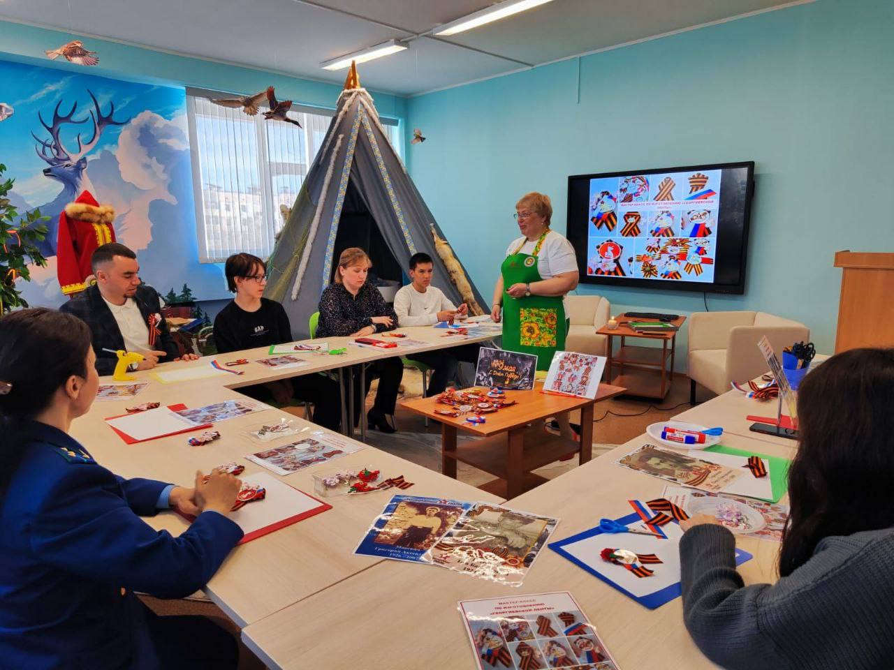 В преддверии Дня Победы прокурором Ноябрьска Сергеем Полуяхтовым проведена встреча с воспитанниками МКУ "Детский дом "Семья" и принято участие в мастер-классе по изготовлению георгиевских ленточек.