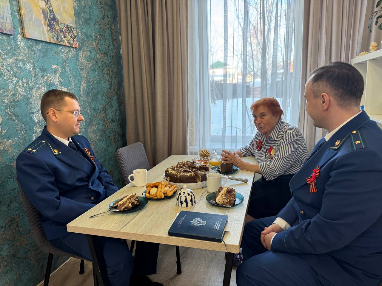 В ходе встречи прокурор поздравил Анну Дмитриевну с наступающим праздником, пожелал здоровья и благополучия, а также предложил помощь в любых возникающих вопросах.