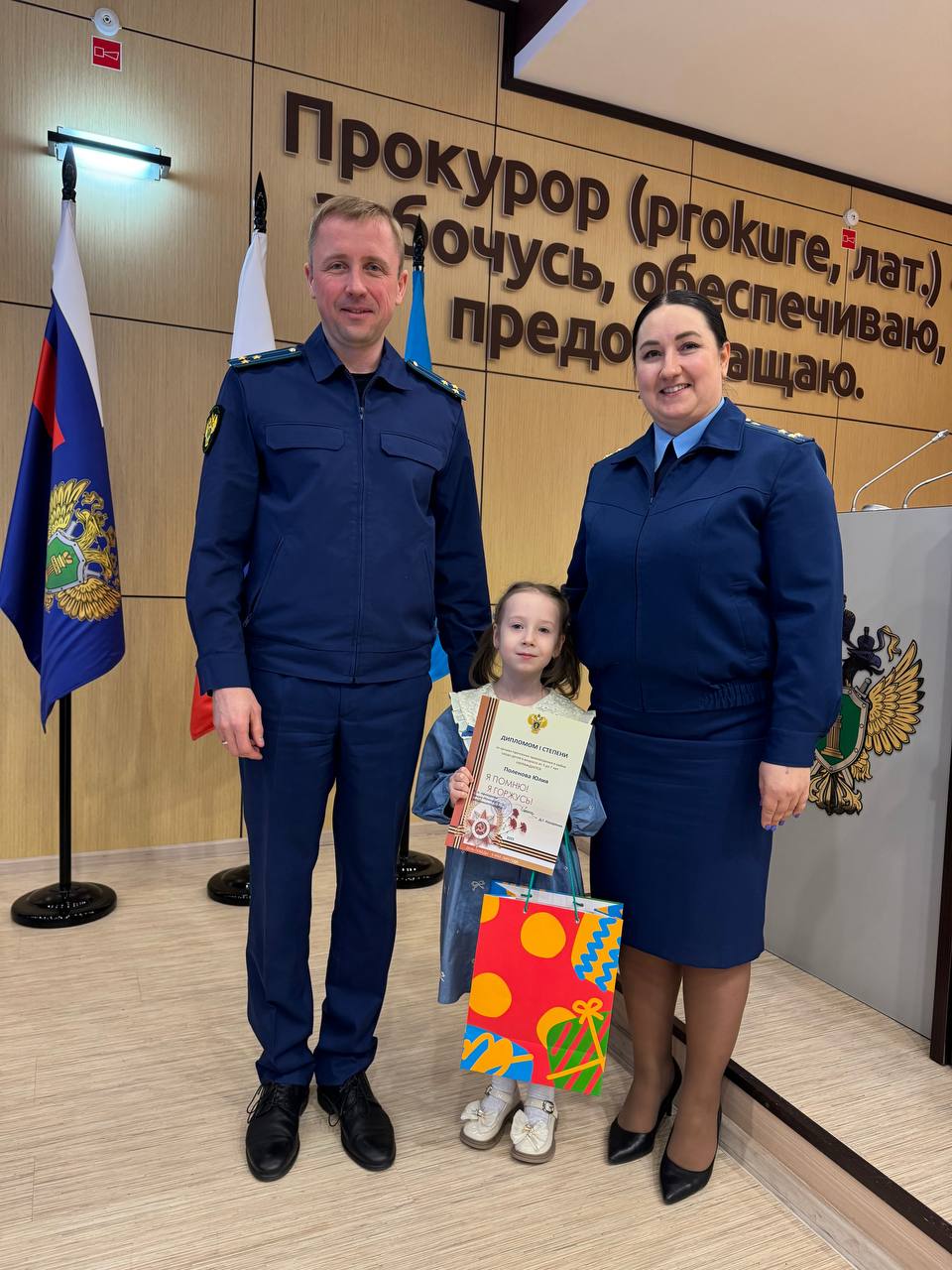 Заместитель прокурора автономного округа Александр Демин поблагодарил ребят за проявленный интерес и поздравил победителей, проживающих в Салехарде. Детям вручены дипломы и подарки.