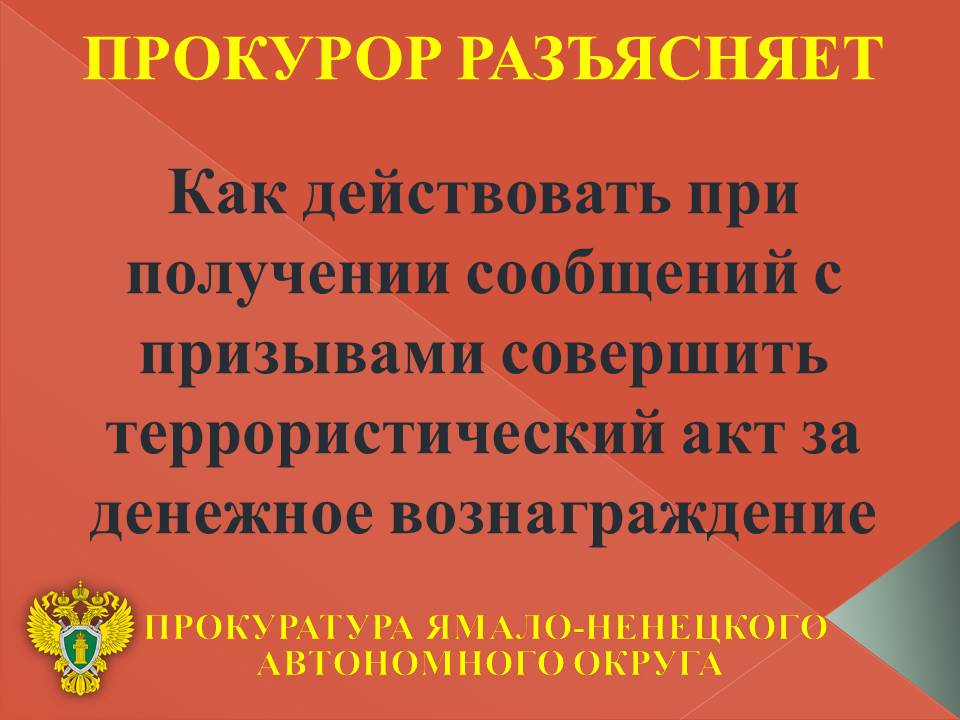 Прокуратура округа разъясняет. Как действовать при получении сообщений с призывами совершить террористический акт за денежное вознаграждение
