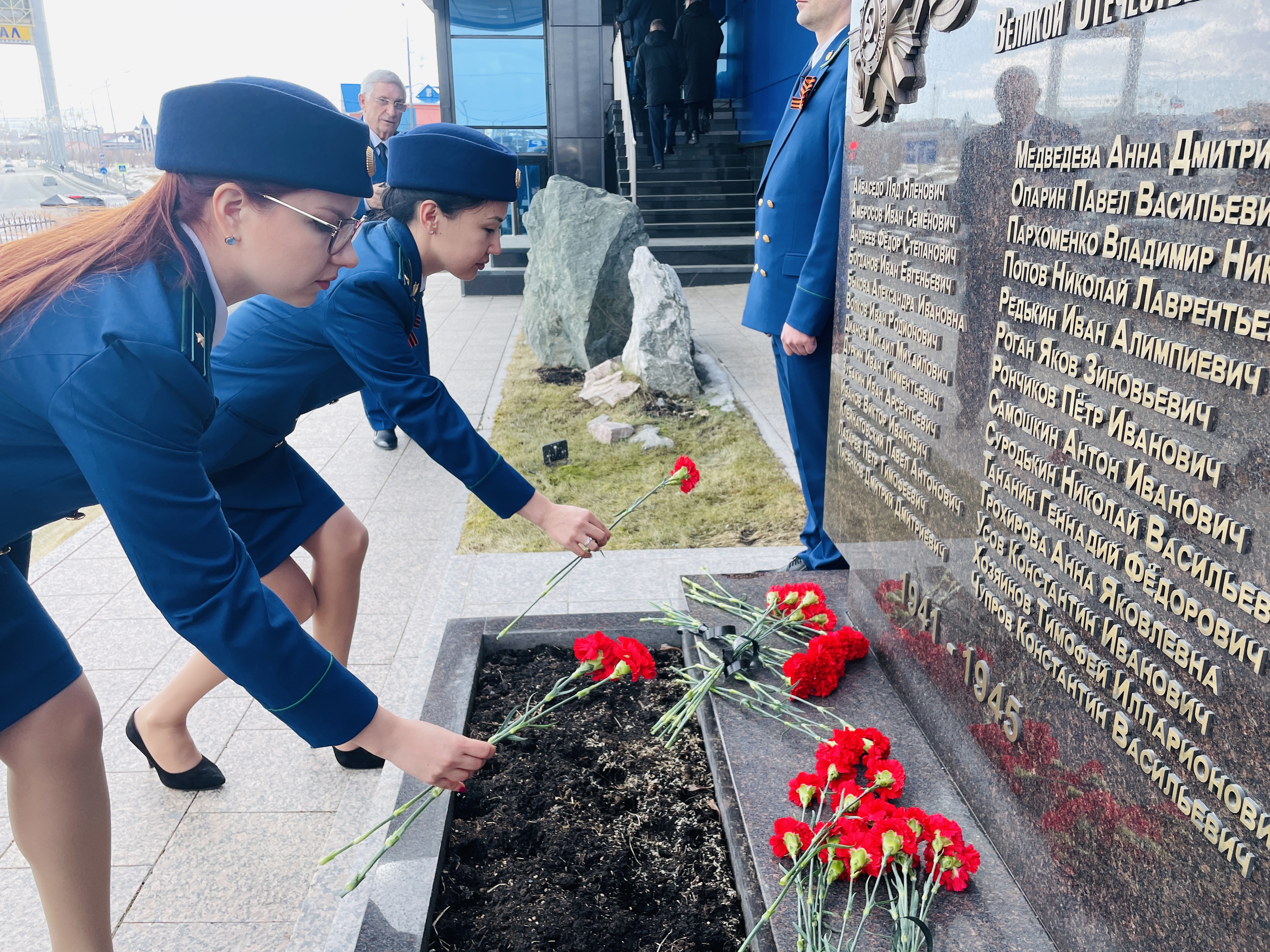 В завершении мероприятия ветераны, пенсионеры, действующие работники прокуратуры, а также студенты почтили память павших воинов возложением цветов к памятнику работникам прокуратуры автономного округа – участникам Великой Отечественной войны.