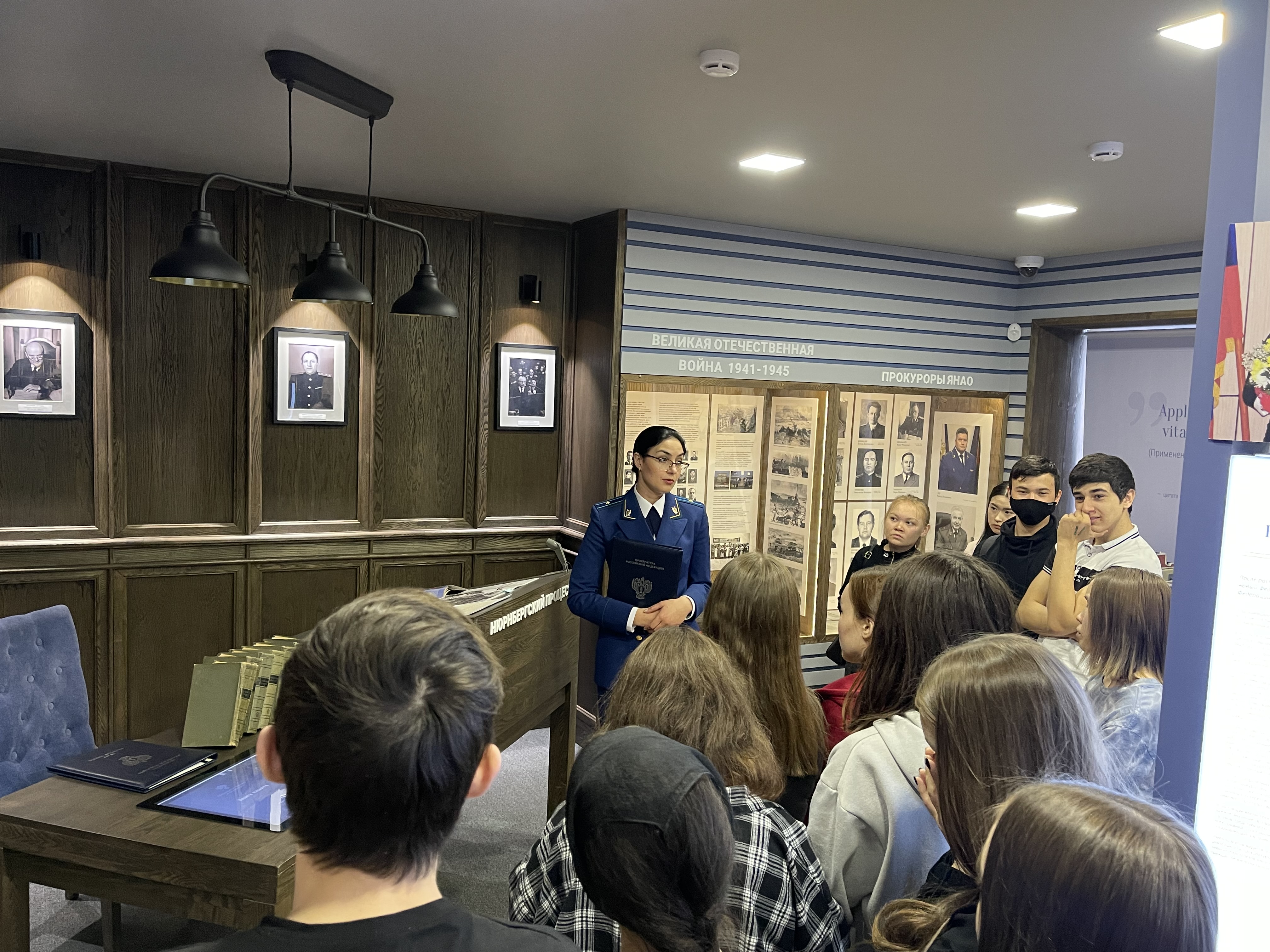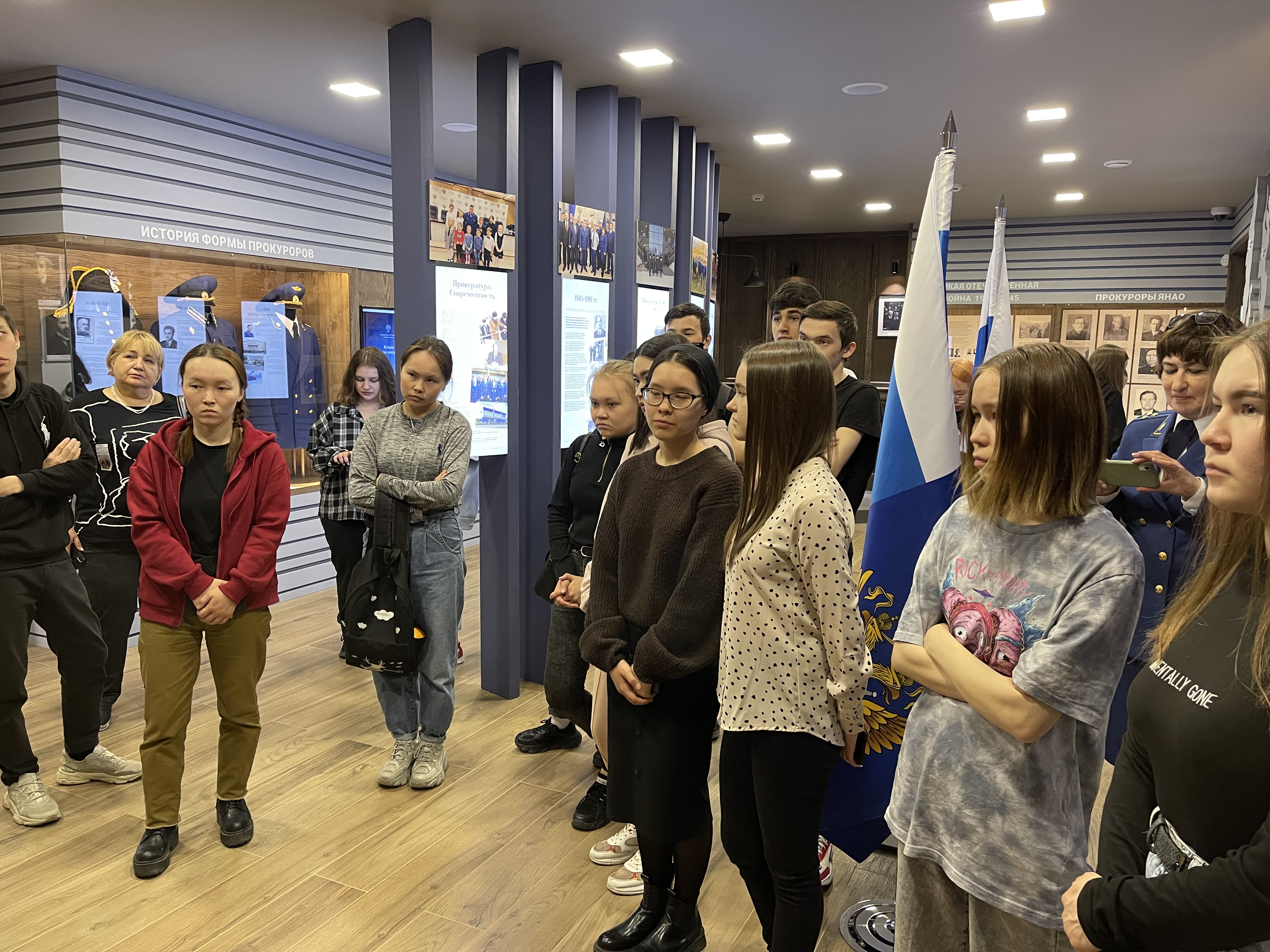 Продолжением торжественного мероприятия стало проведение экскурсии в Музее окружной прокуратуры для студентов Ямальского многопрофильного колледжа. Действующие работники и ветераны прокуратуры округа поделились историей образования и развития надзорного ведомства, в том числе в советский период.