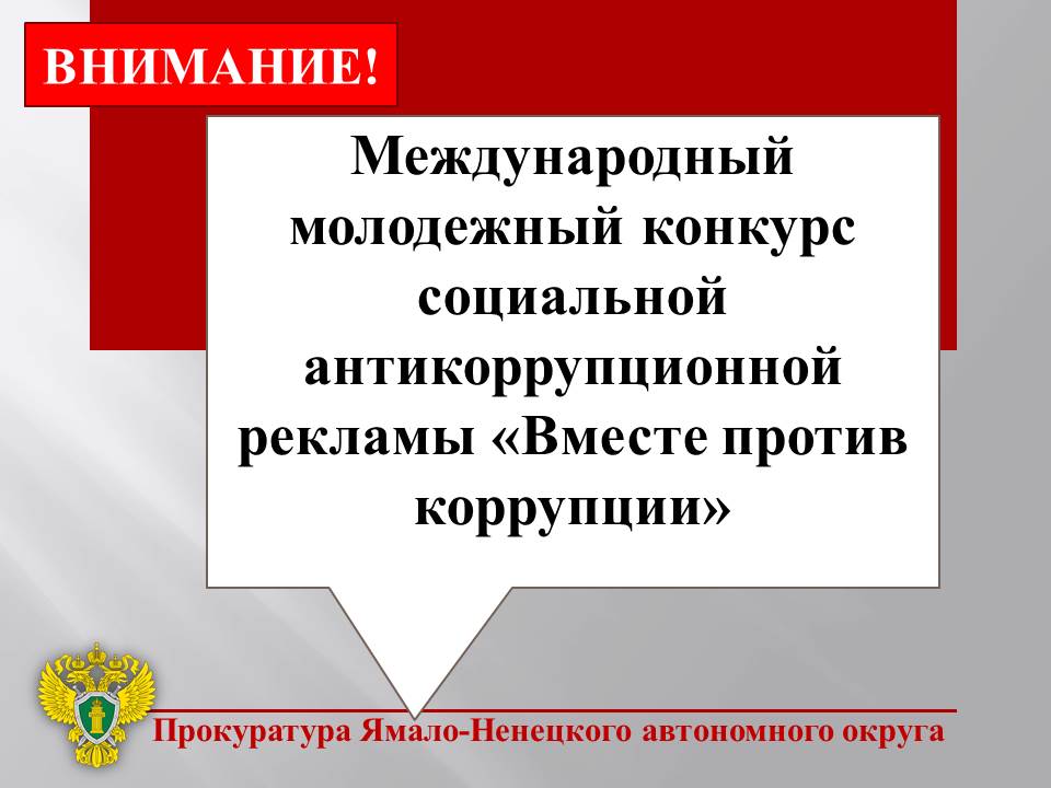 Внимание! Международный молодежный конкурс социальной антикоррупционной рекламы «Вместе против коррупции»