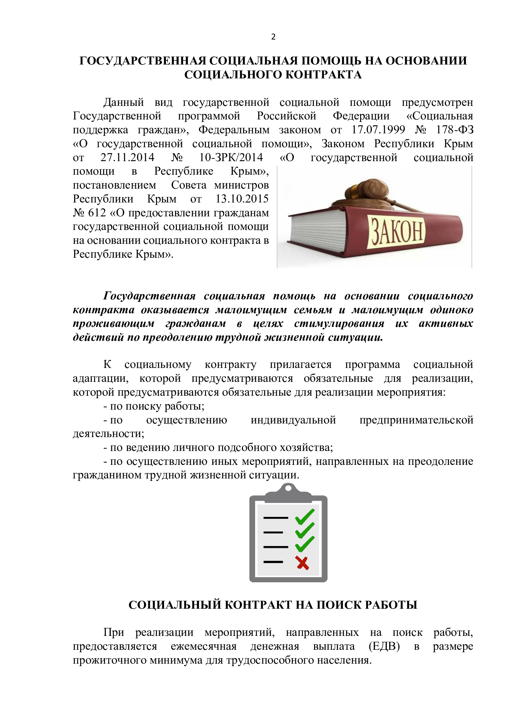 Прокуратурой Республики Крым для населения подготовлена информационная памятка "Государственная социальная помощь на основании социального контракта"
