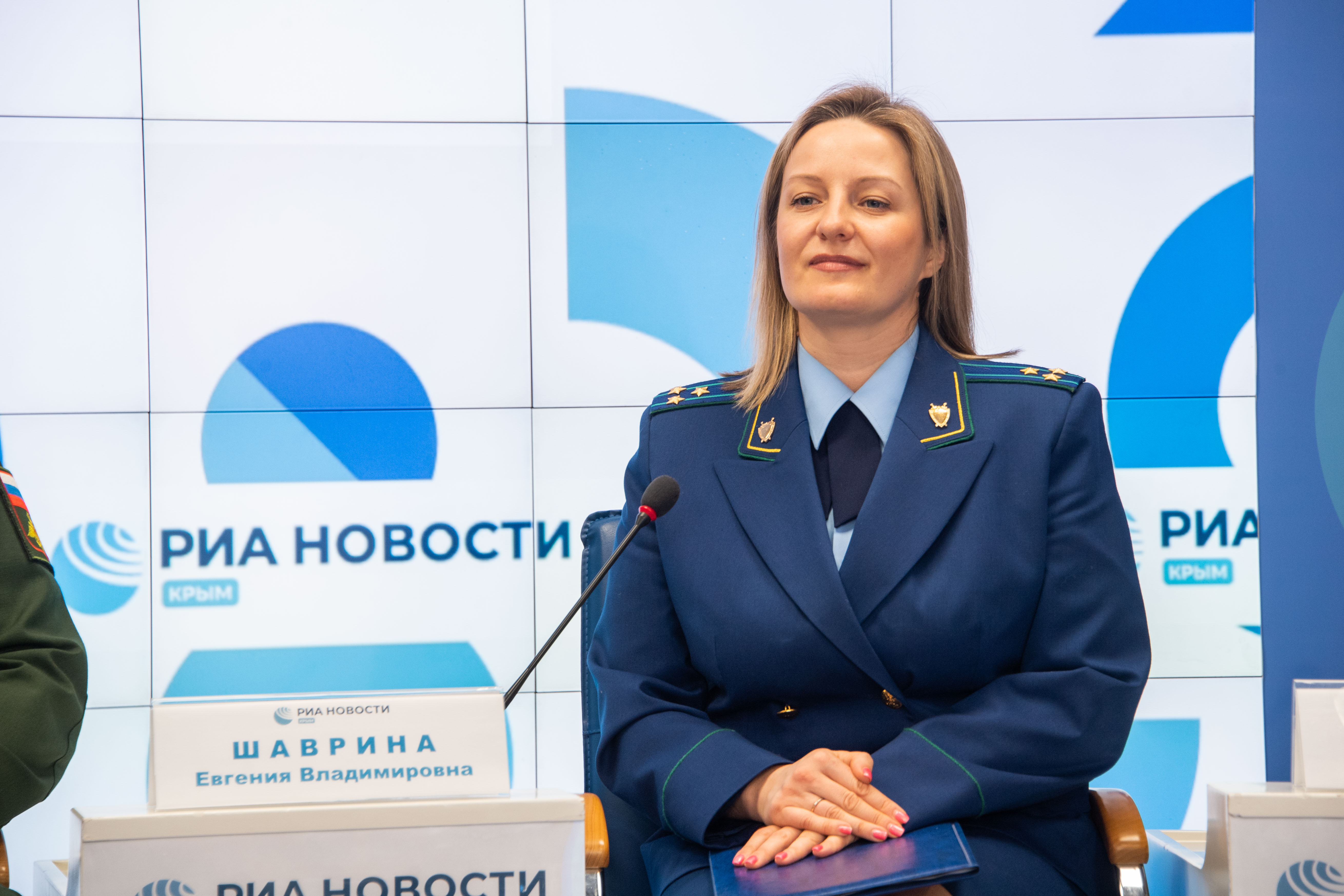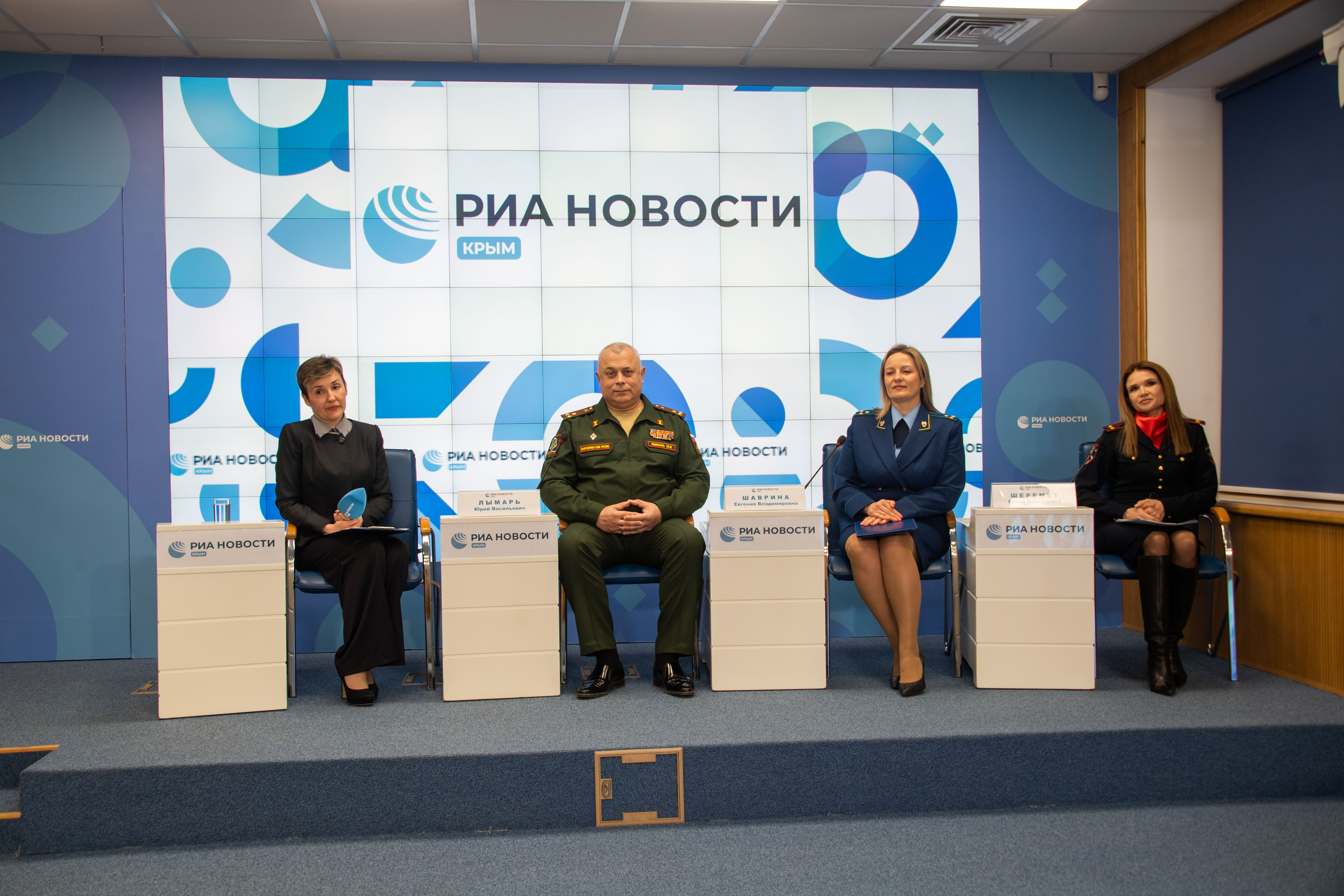 Участие в пресс-конференции приняли начальник отдела кадров прокуратуры Республики Крым Евгения Шаврина, военный комиссар Республики Крым Юрий Лымарь и заместитель начальника управления по работе с личным составом МВД по Республике Крым Елена Шеремет.