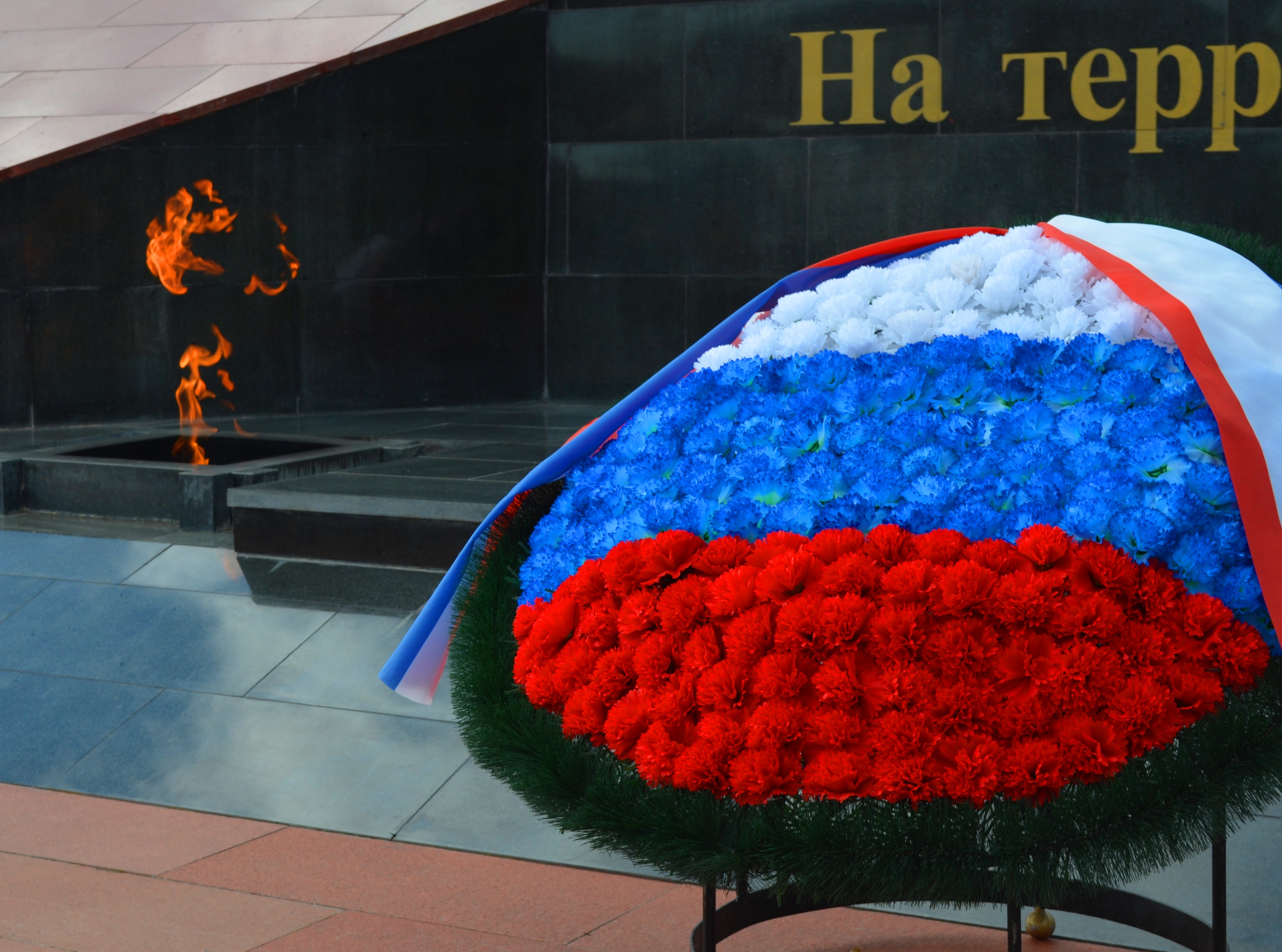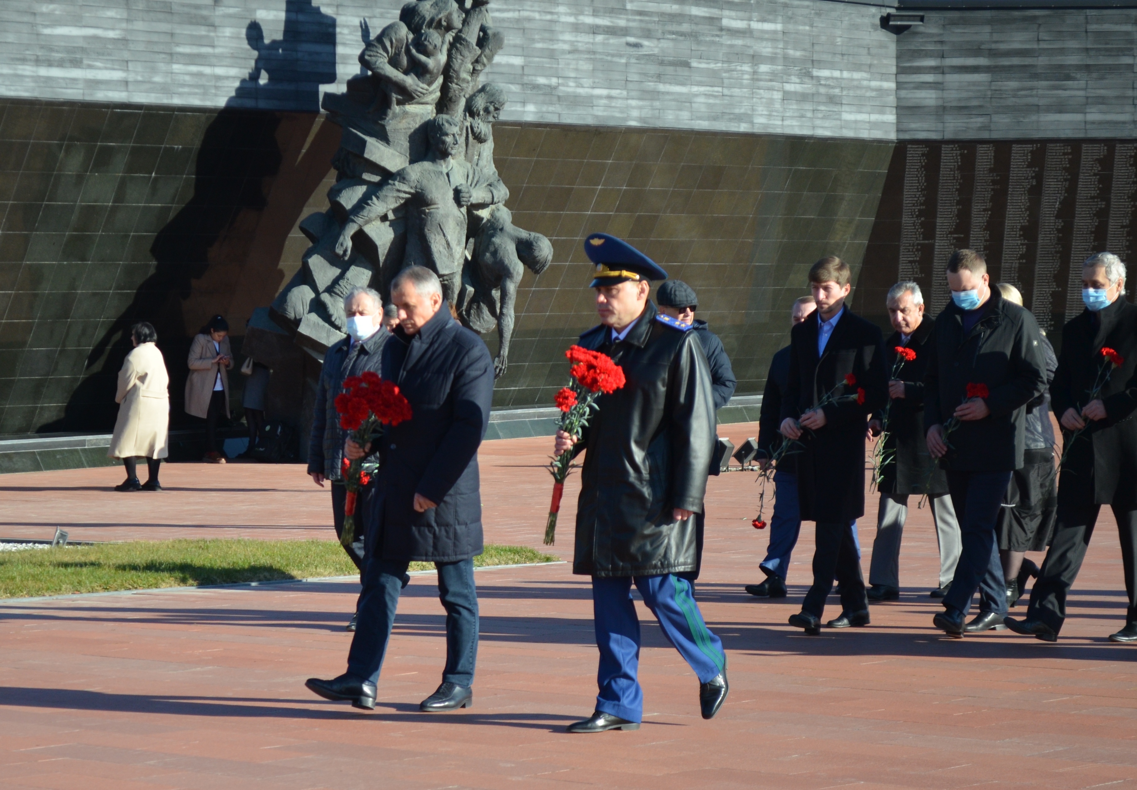 В память о зверски замученных советских гражданах в концлагере «Красный» Олег Камшилов и Владимир Константинов ударили в памятный колокол, а также возложили цветы к монументу.