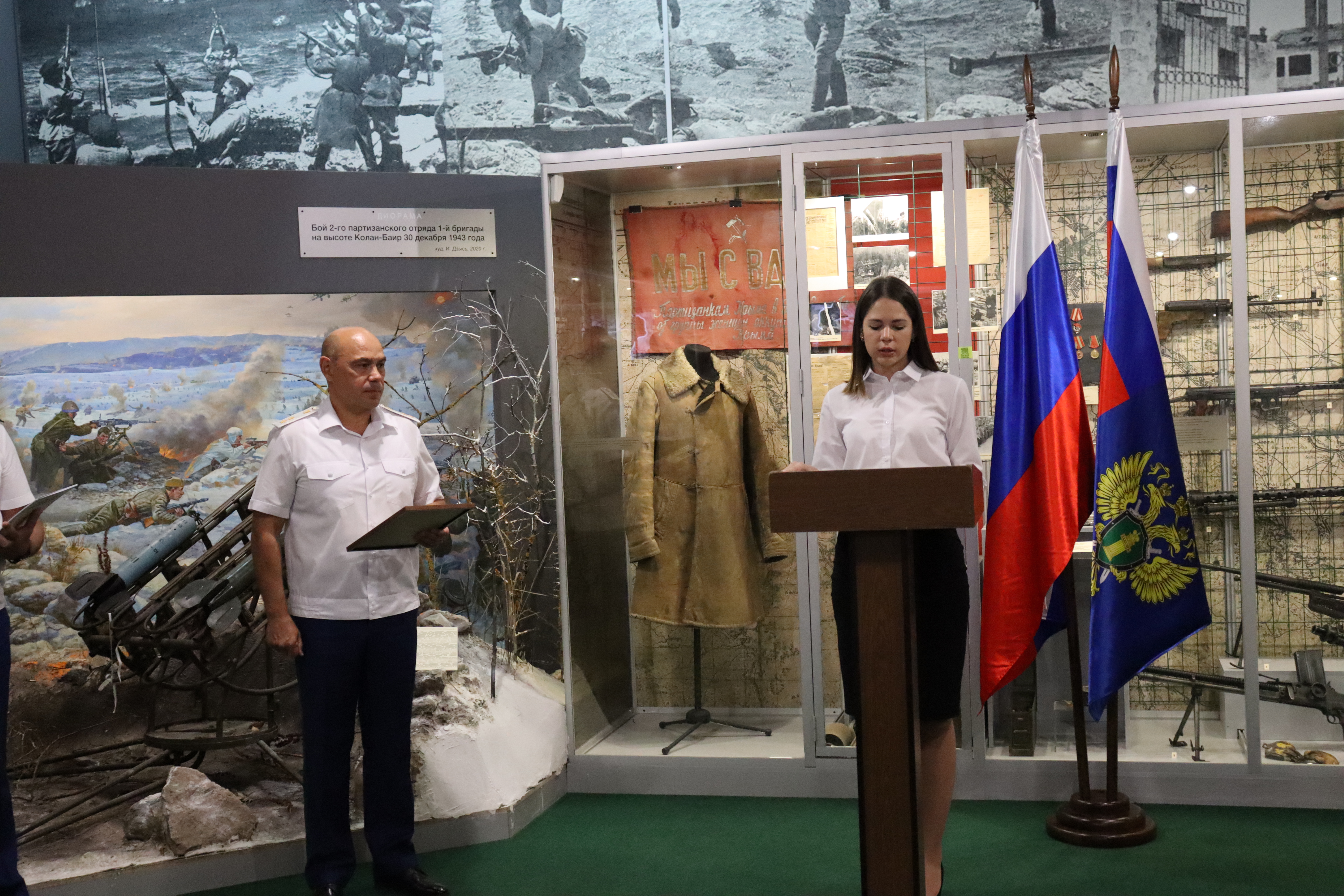 Прокурор Республики Крым Олег Камшилов и ветеран органов прокуратуры Валентина Григорьевна Шабалина напутствовали молодых работников, пожелав им успехов в дальнейшей профессиональной деятельности, совершенствовать свои знания, сохранять верность Отечеству и Присяге прокурора.