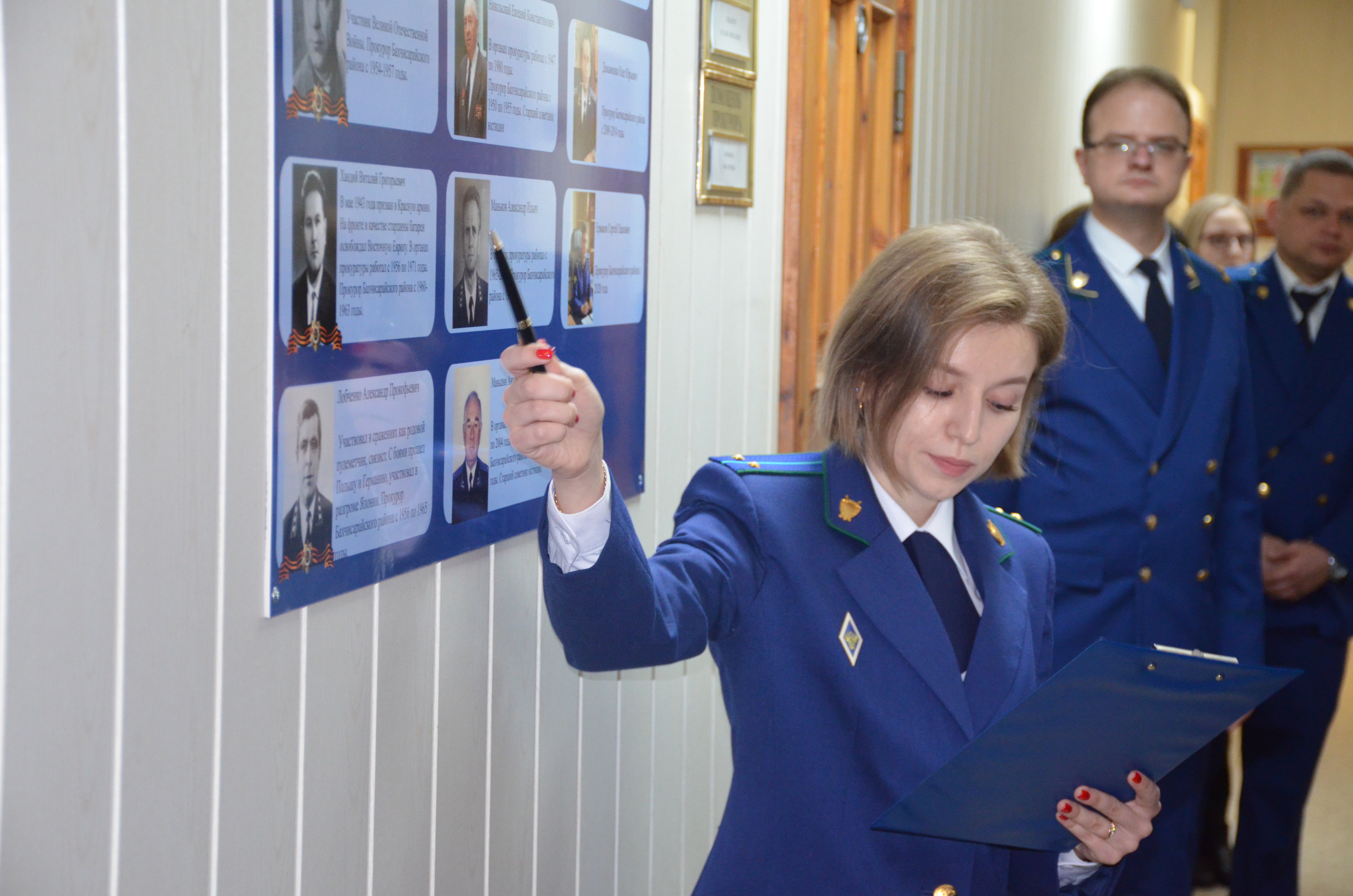 Открытие экспозиции истории прокуратуры района стало возможным при активной поддержке ветеранов, которые предоставили фотографические материалы и документы. Центральное место отведено фотографиям прокуроров, возглавлявших в разные периоды прокуратуру района.