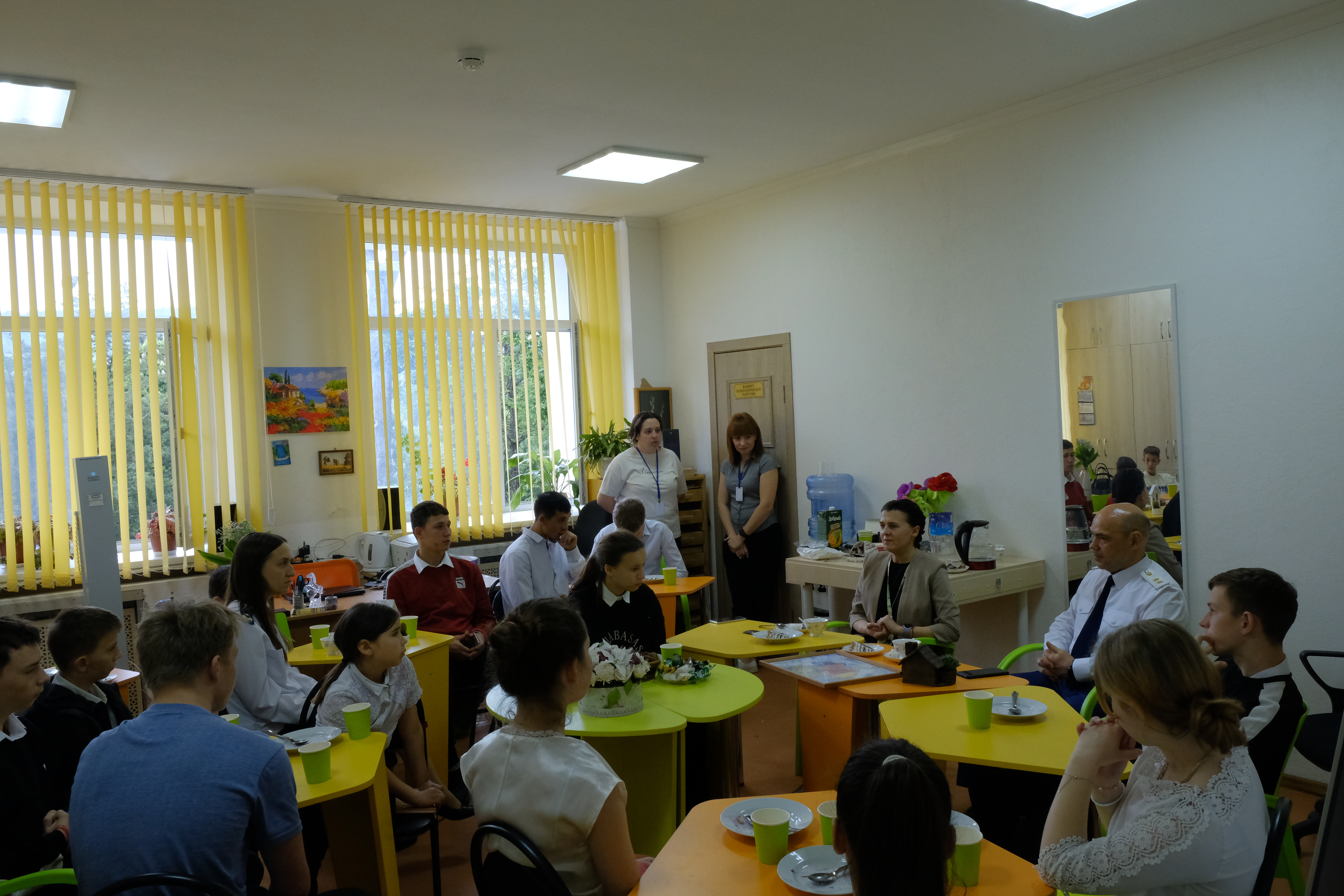 Ребята дружно встретили гостей и охотно пообщались с ними в неформальной обстановке. За чашкой чая дети поделились своими школьными и творческими успехами, рассказали о планах на летние каникулы, а выпускники школы – о выборе будущей профессии.