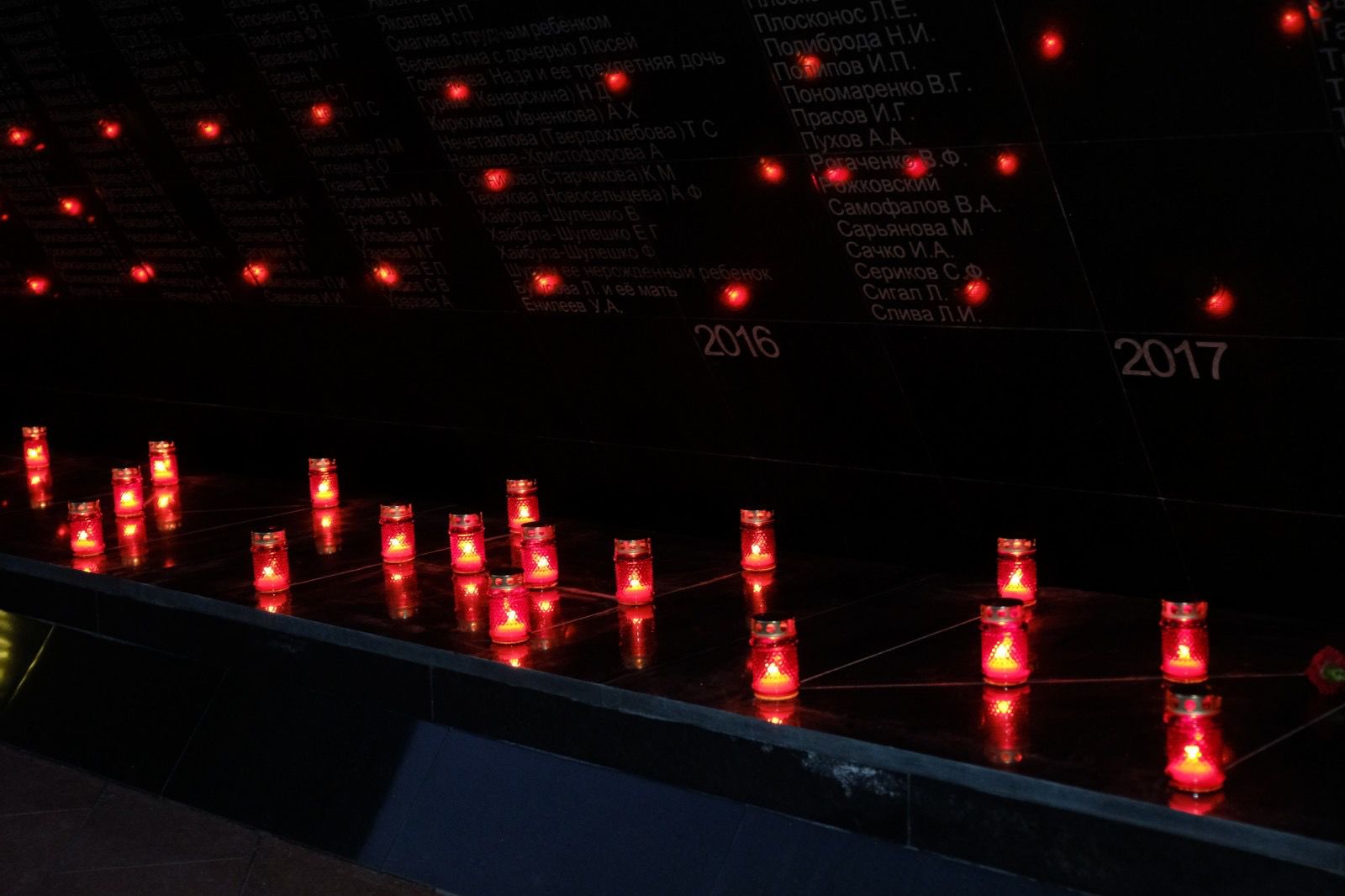 «Помним», – с такими словами участники акции оставили горящие свечи у Стены Скорби.
