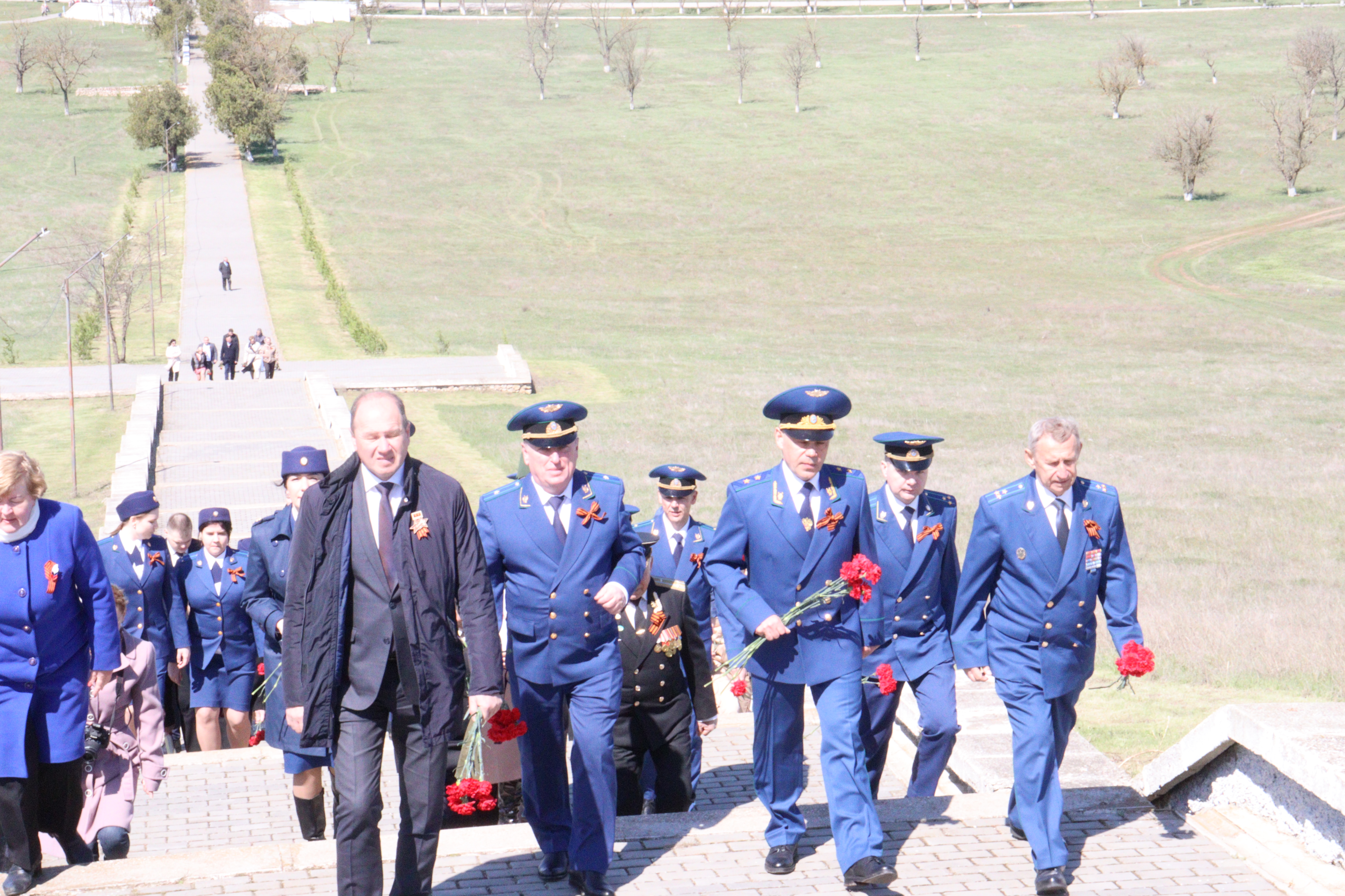 Прокурор Крыма Олег Камшилов, работники и ветераны прокуратуры, молодые специалисты почтили память всех жертв фашизма минутой молчания, поднявшись на курган Славы возложили цветы к подножью Мемориала.