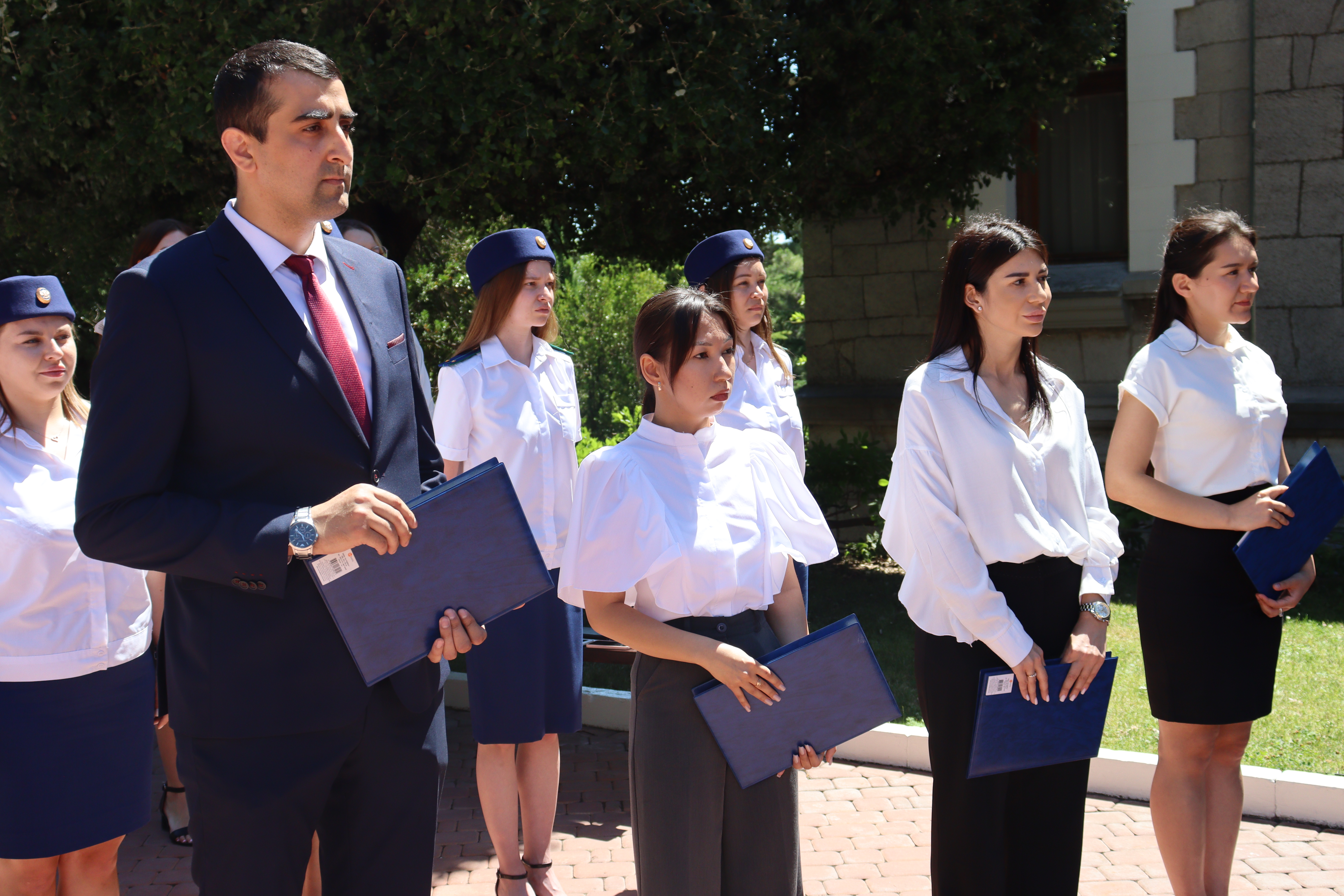 Он пожелал молодым специалистам успехов в дальнейшей профессиональной деятельности, совершенствовать свои знания, сохранять верность Отечеству и Присяге прокурора.