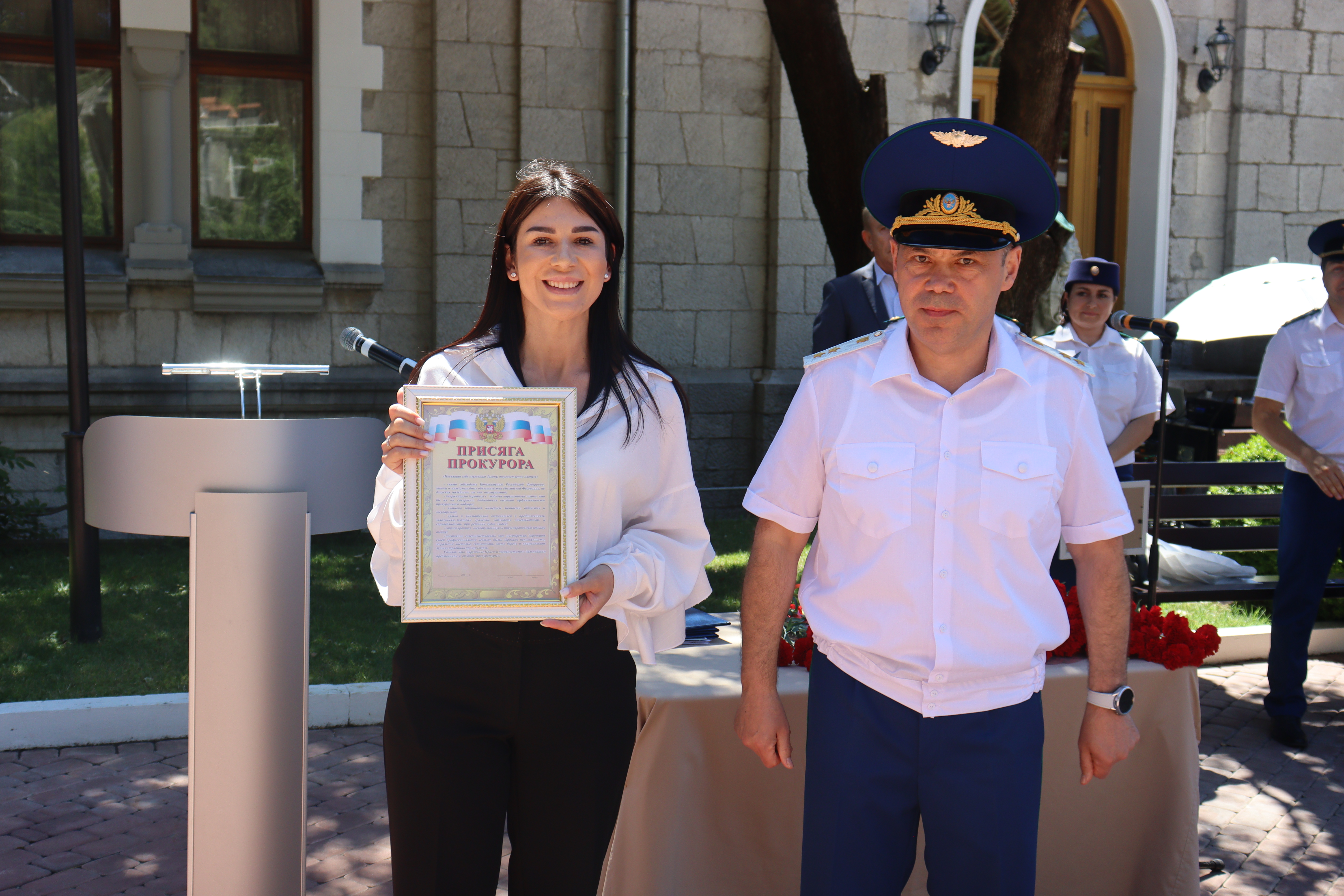 Сегодня, 21 июня 2024 года, на территории Юсуповского дворца в поселке Кореиз состоялось принятие молодыми специалистами прокуратуры республики Присяги прокурора.