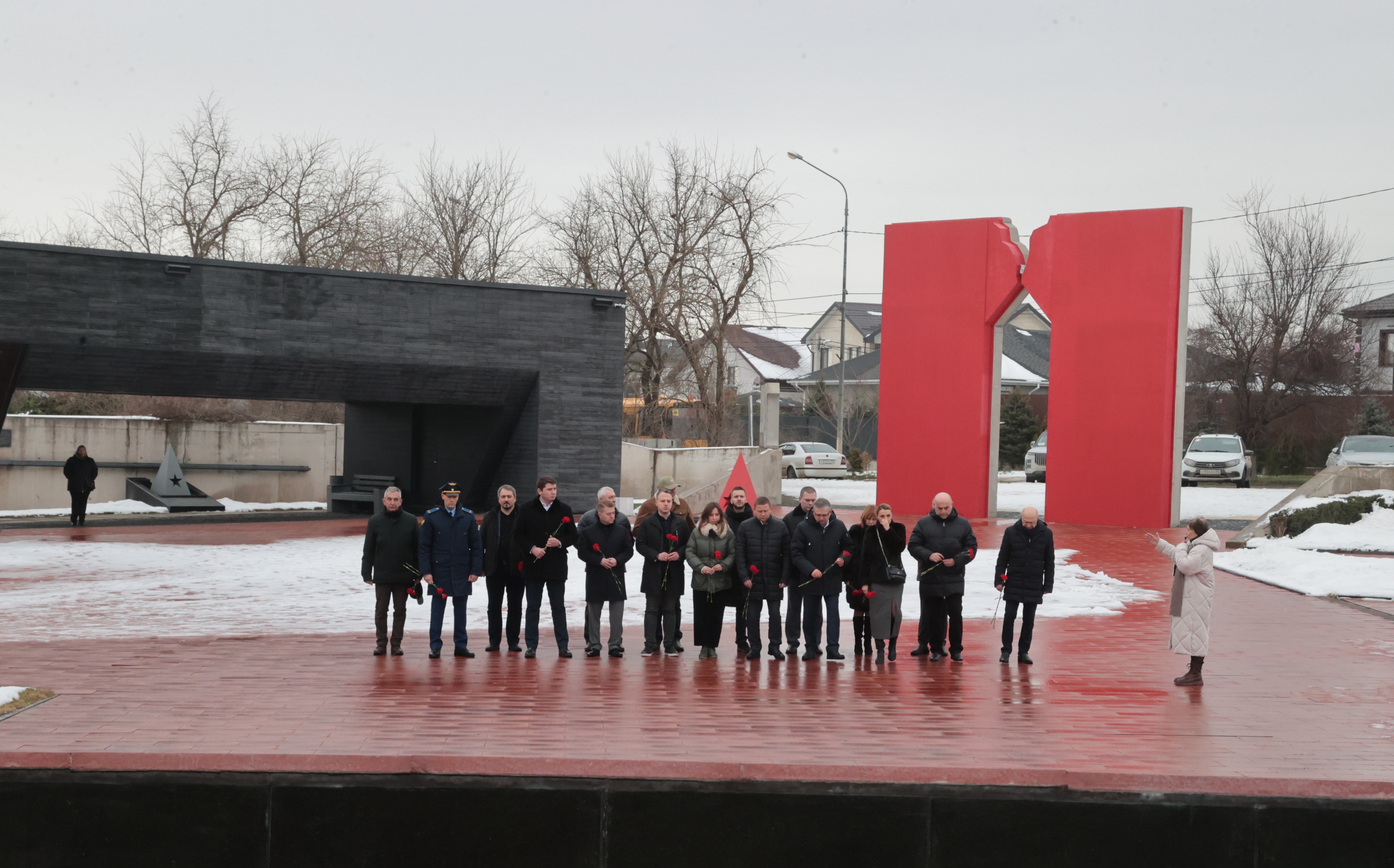 В знак памяти и глубокого уважения к жертвам немецко-фашистских захватчиков участники мероприятия возложили цветы к мемориальному комплексу.