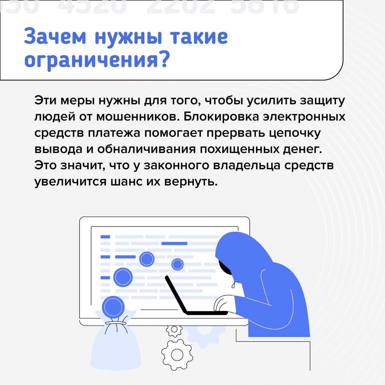 С 25 июля банки стали приостанавливать денежные переводы на подозрительные счета, которые есть в специальной базе данных Банка России. Вдобавок владельцам таких счетов теперь ограничивают доступ к картам и онлайн-банку. Все это позволяет лучше защищать сбережения людей от преступников.