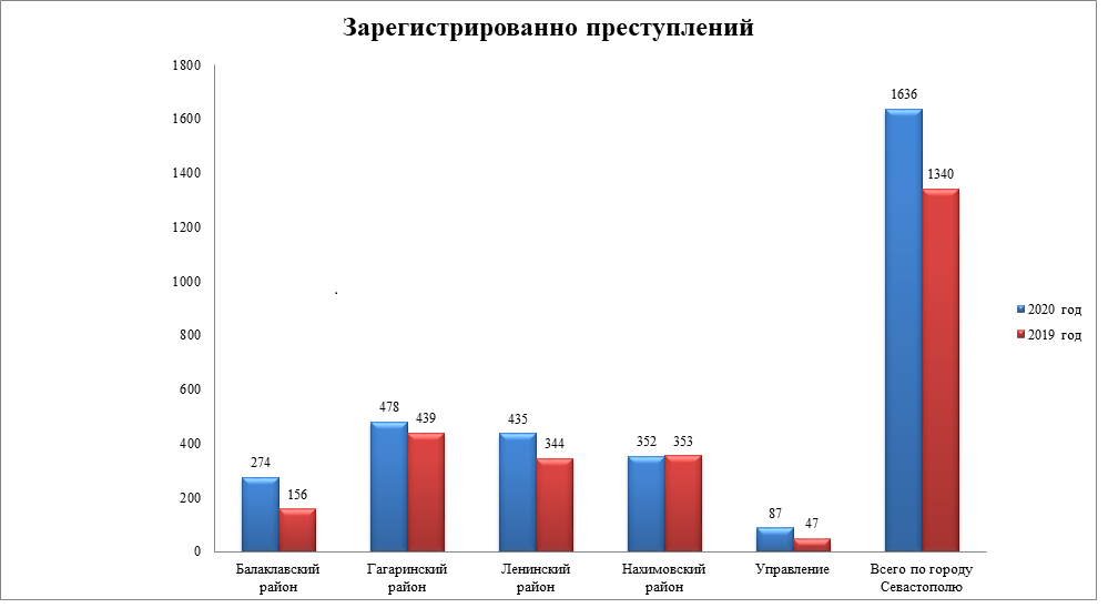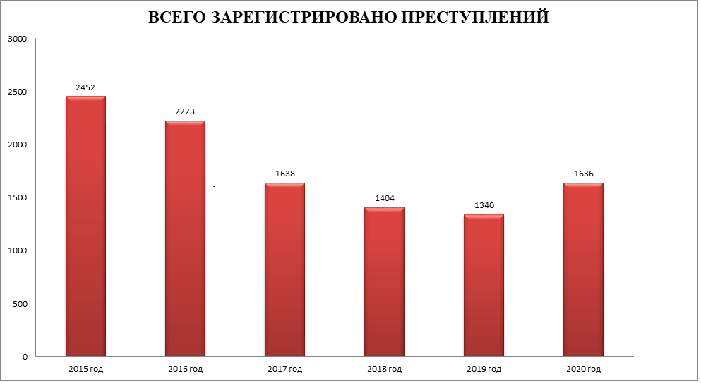 - зарегистрировано 1 636 преступлений (2019 год – 1 340), рост на 296 преступлений, или на 22,1 %.