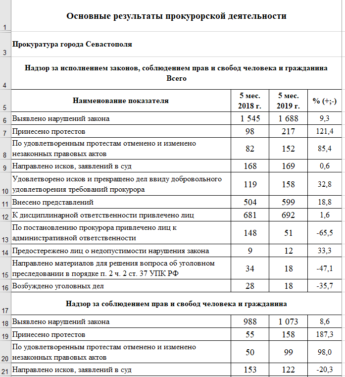 Основные результаты прокурорской деятельности (2018-2019) -МАЙ