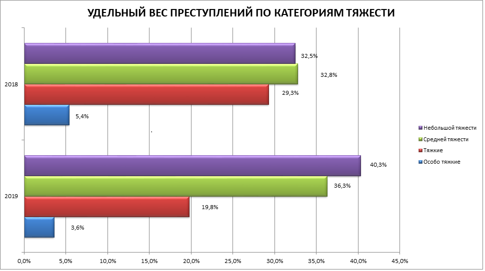 - находились в производстве уголовные дела по 115 особо тяжким преступлениям зарегистрировано 9 преступлений (удельный вес 3,6%), предварительно расследовано 4 (все направлены в суд с обвинительным актом, обвинительным постановлением). Не раскрыто 11 (приостановлено по п.1 ч.1 ст.208 – 10, по п.2 ч.1 ст.208 – 1, по п.4 ч.1 ст.208 – 4), процент раскрываемости составил 26,7%, выявлено 3 лица, совершивших преступления. В 2018 году было зарегистрировано 17 преступлений (удельный вес 5,4%), предварительно расследовано 24 (в том числе 23 (95,8%) направлено в суд с обвинительным актом, обвинительным постановлением). Не раскрыто 2, приостановлены по п.1 ч.1 ст.208, процент раскрываемости составил 92,3%, выявлено 8 лиц, совершивших преступления;