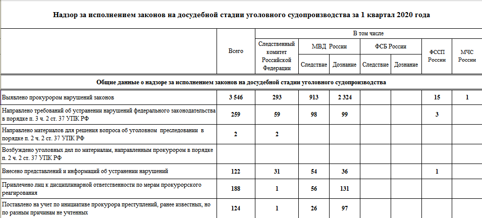 Надзор за исполнением законов на досудебной стадии уголовного судопроизводства за 1 квартал 2020 года