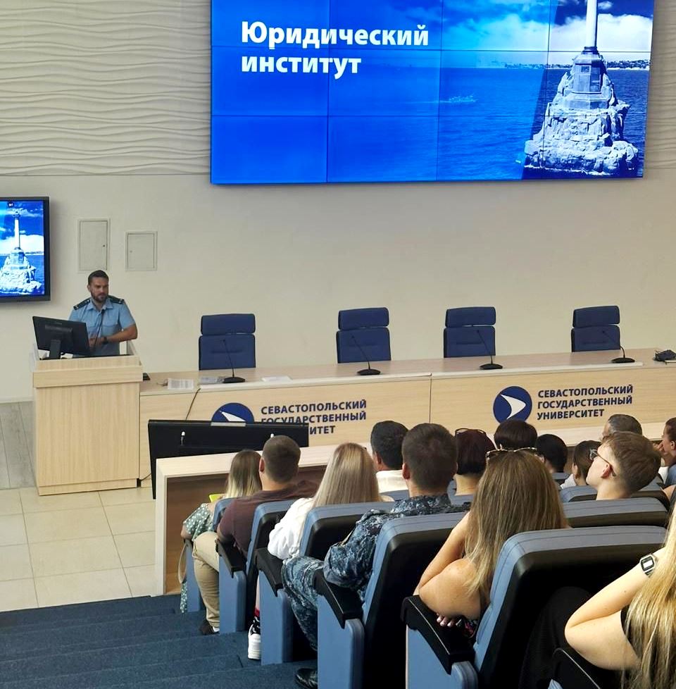 Исполняющий обязанности прокурора Гагаринского района Евгений Павельчук провел встречу со студентами Юридического института ФГАОУ ВО «Севастопольский государственный университет», приуроченную к началу нового учебного года.