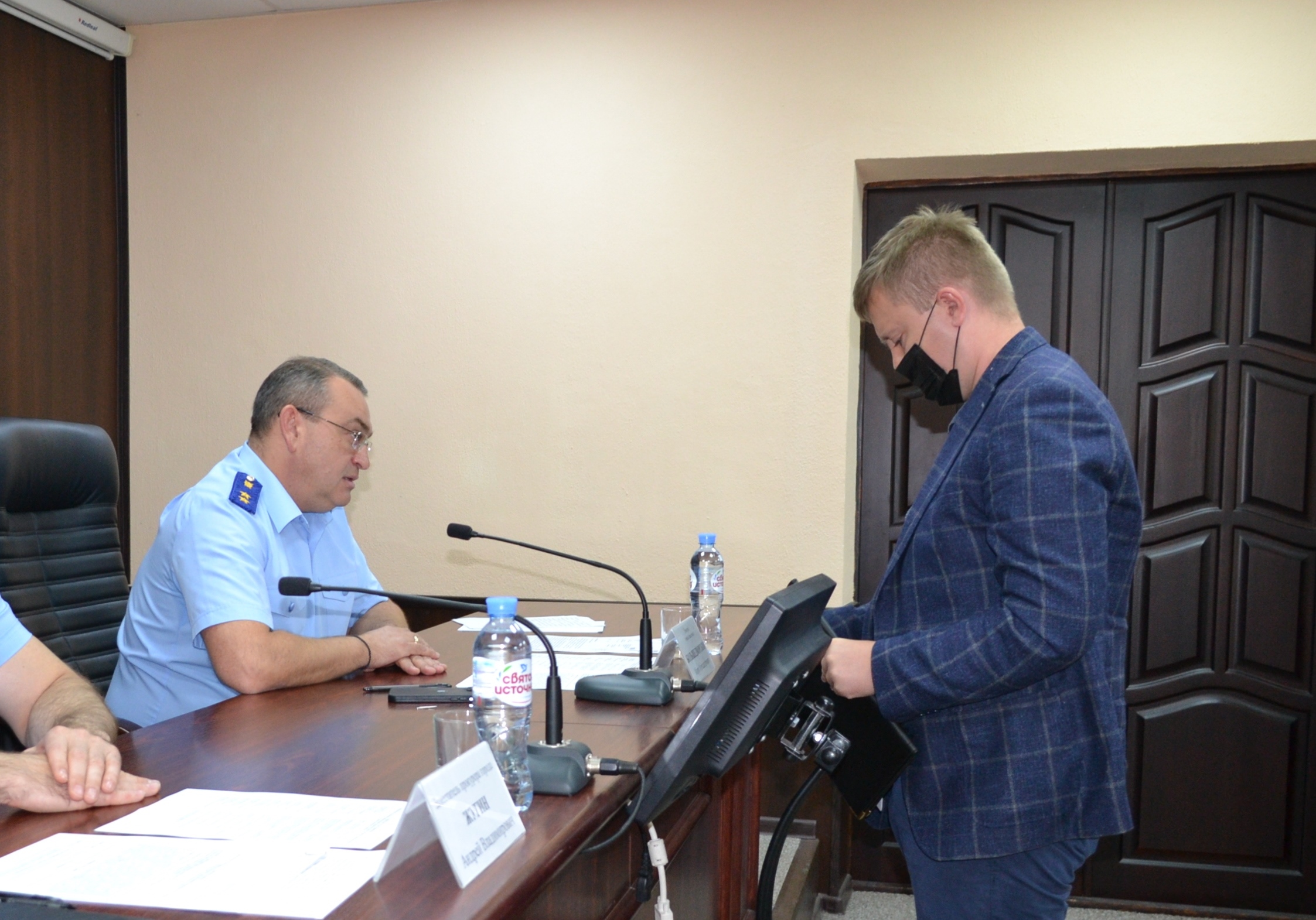 В ходе совещания прокурор города должностным лицам шести подрядных организаций и руководителю государственного казенного учреждения «Дирекция», выступающего заказчиком, вручил предостережения о недопустимости нарушения бюджетного законодательства, законодательства о безопасности дорожного движения, об автомобильных дорогах и о дорожной деятельности в дальнейшем.