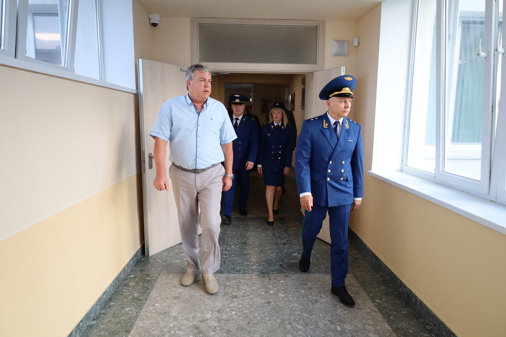 До начала мероприятия прокурор города вместе с директором образовательного учреждения Вячеславом Белым осмотрел отремонтированные помещения начальной школы, спортивный зал с современным оборудованием и душевой, столовую, актовый зал. Андрей Шевцов интересовался вопросами организации учебного процесса и питания учащихся. Кроме того, он обсудил с руководителем учреждения ход реконструкции тепловой сети от котельной на ул. Маршала Геловани, 3, которая производится в настоящее время. Работы частично затрагивают зону школьного стадиона. На территории учреждения они уже выполнены на 80 %, а в целом объект должен быть завершен к концу 2025 года. Директор проинформировал прокурора города о принятых мерах по обеспечению безопасности детей в школе.