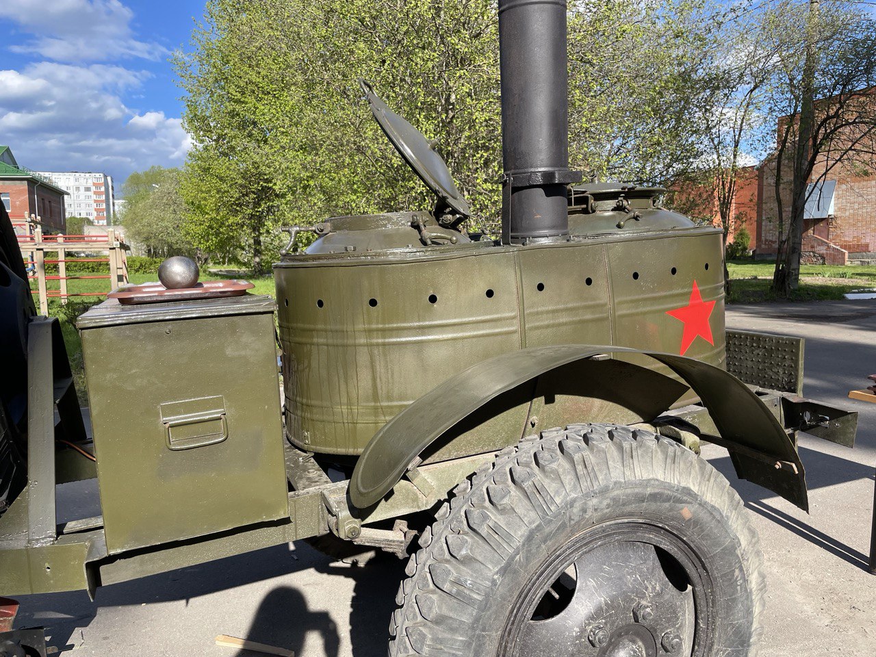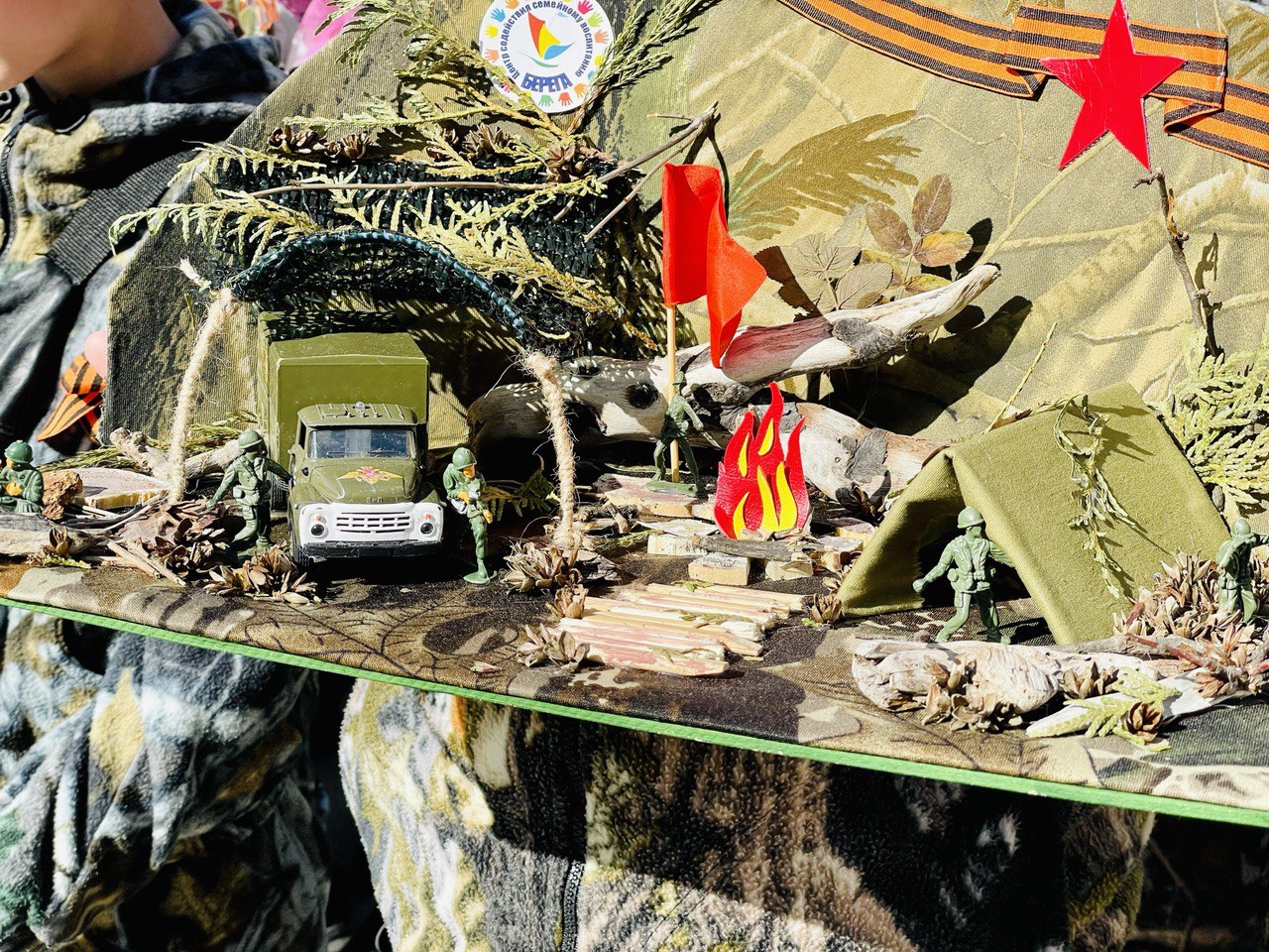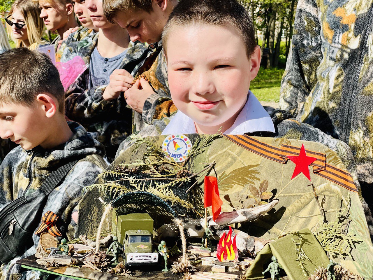 На свежем воздухе была развернута полевая кухня, где дети с удовольствием попробовали солдатскую кашу и горячий чай.