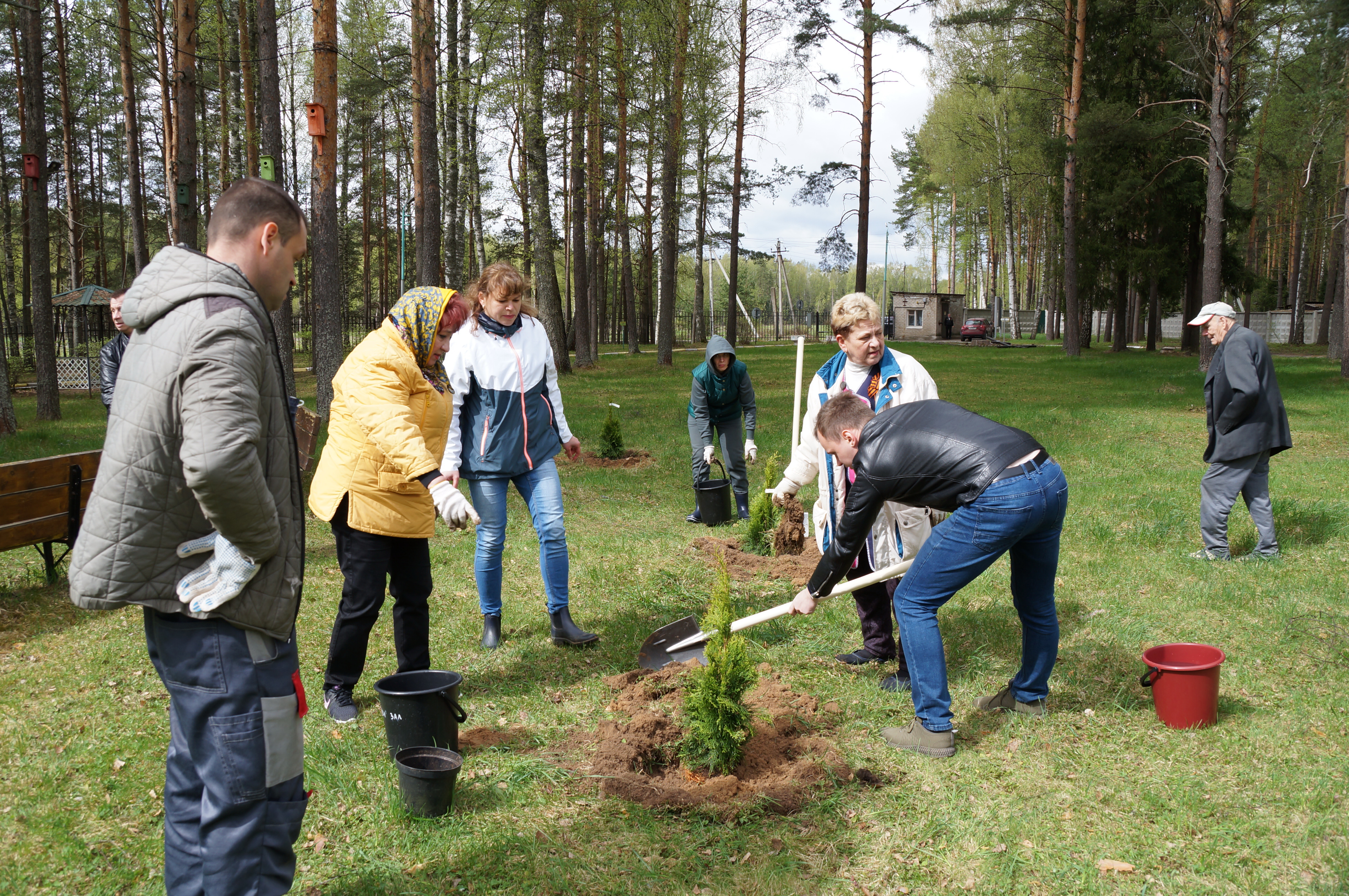 Совместно с представителями профсоюза госучреждений, сотрудниками администрации учреждения и постояльцами было высажено более 50 деревьев, которые впоследствии будут украшать территорию пансионата.