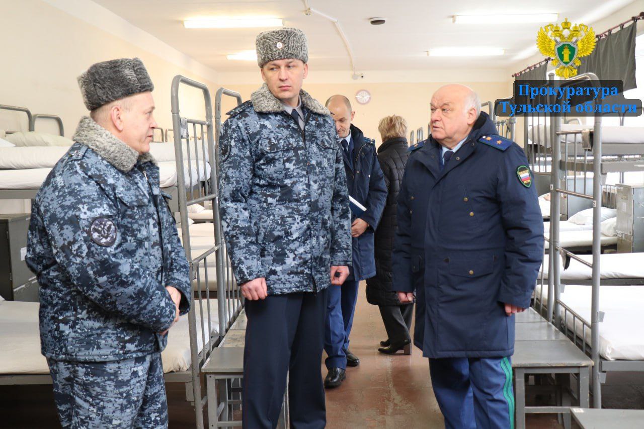 Накануне, 27.03.2025, исполняющий обязанности прокурора Тульской области Михаил Можаев, с участием уполномоченного по правам человека в Тульской области Татьяны Лариной, начальника УФСИН России по Тульской области Павла Ломакина, представителей общественной наблюдательной комиссии провел проверку в ФКУ ИК – 2 УФСИН России по Тульской области (г. Тула).