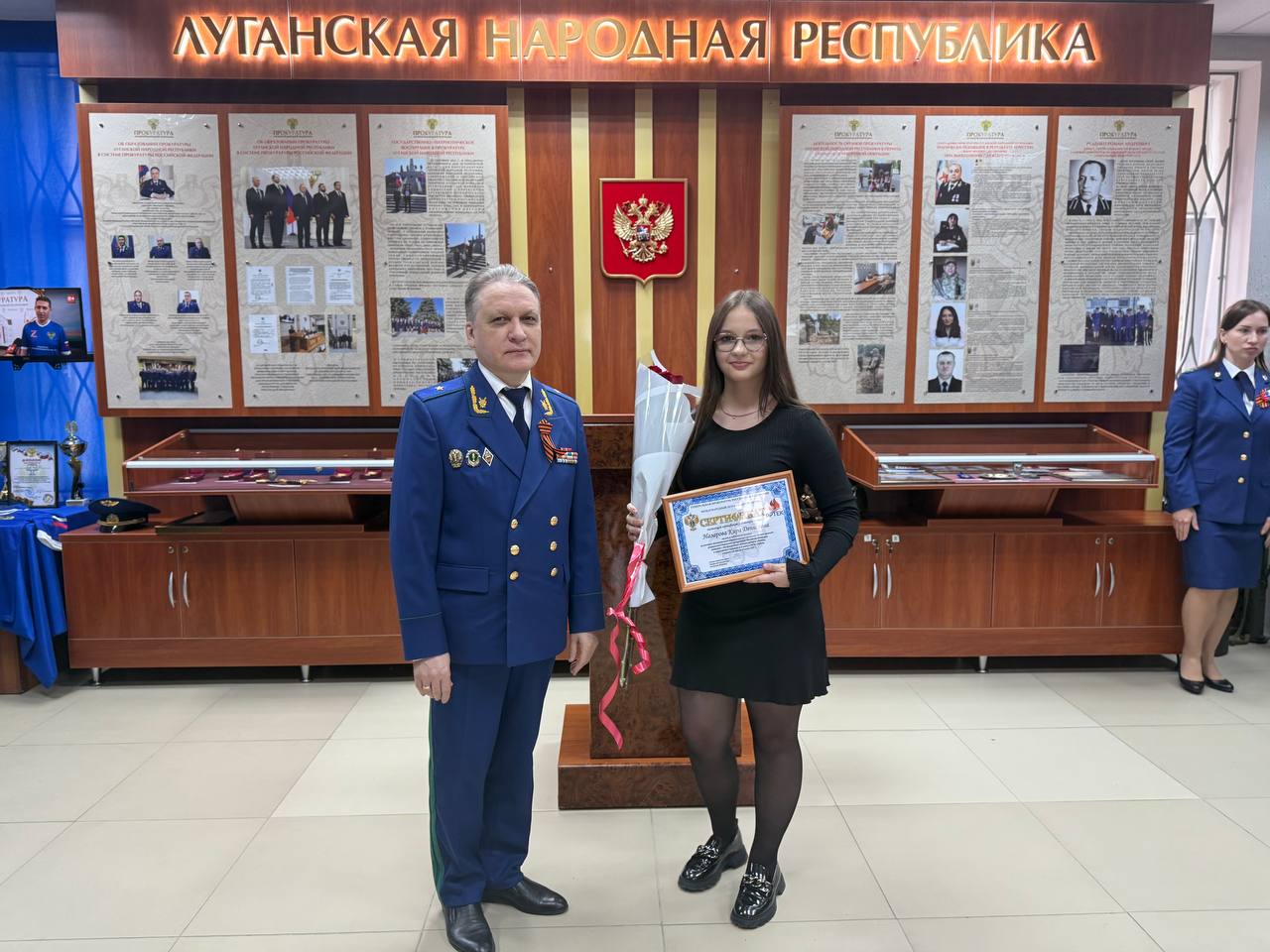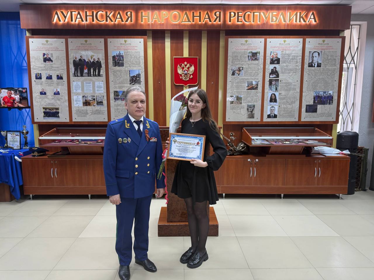По поручению Генерального прокурора Российской Федерации Игоря Краснова прокурор республики Глеб Михайлов в торжественной обстановке вручил именные сертификаты на путевку в МДЦ «Артек» ученицам ГОУ ЛНР «Кировская средняя школа № 2» Назаровой Кире, ГОУ ЛНР «Кировская средняя школа № 2» Клокол Ангелине.