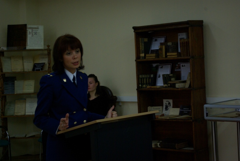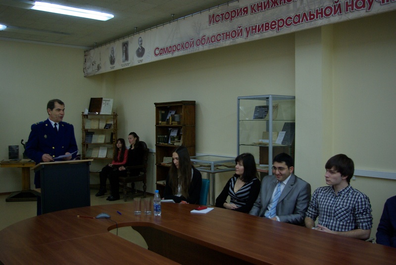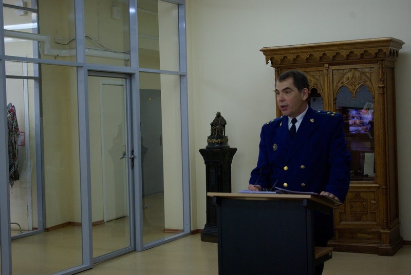 Заместитель прокурора Самарской области Александр Галузин выступил с докладом на тему «Правозащитная деятельность прокуратуры за соблюдением Конституции Российской Федерации». Лектор рассказал слушателям историю создания Конституции Российской Федерации, об особенностях этого свода законов и работе по соблюдению заложенных в нем положений. Им отмечено, что «В действующей Конституции от 1993 года закреплены все права и свободы граждан. С точки зрения государственного устройства, в данной Конституции впервые прописано узаконивание разделения властей на законодательную, исполнительную и судебную. Конституция - основной закон, в котором собраны все мысли нашего законодательства, она устанавливает систему государственного устройства и любой закон должен ей соответствовать. Для защиты прав и свобод человека и гражданина правозащитную функцию выполняет Российская прокуратура».