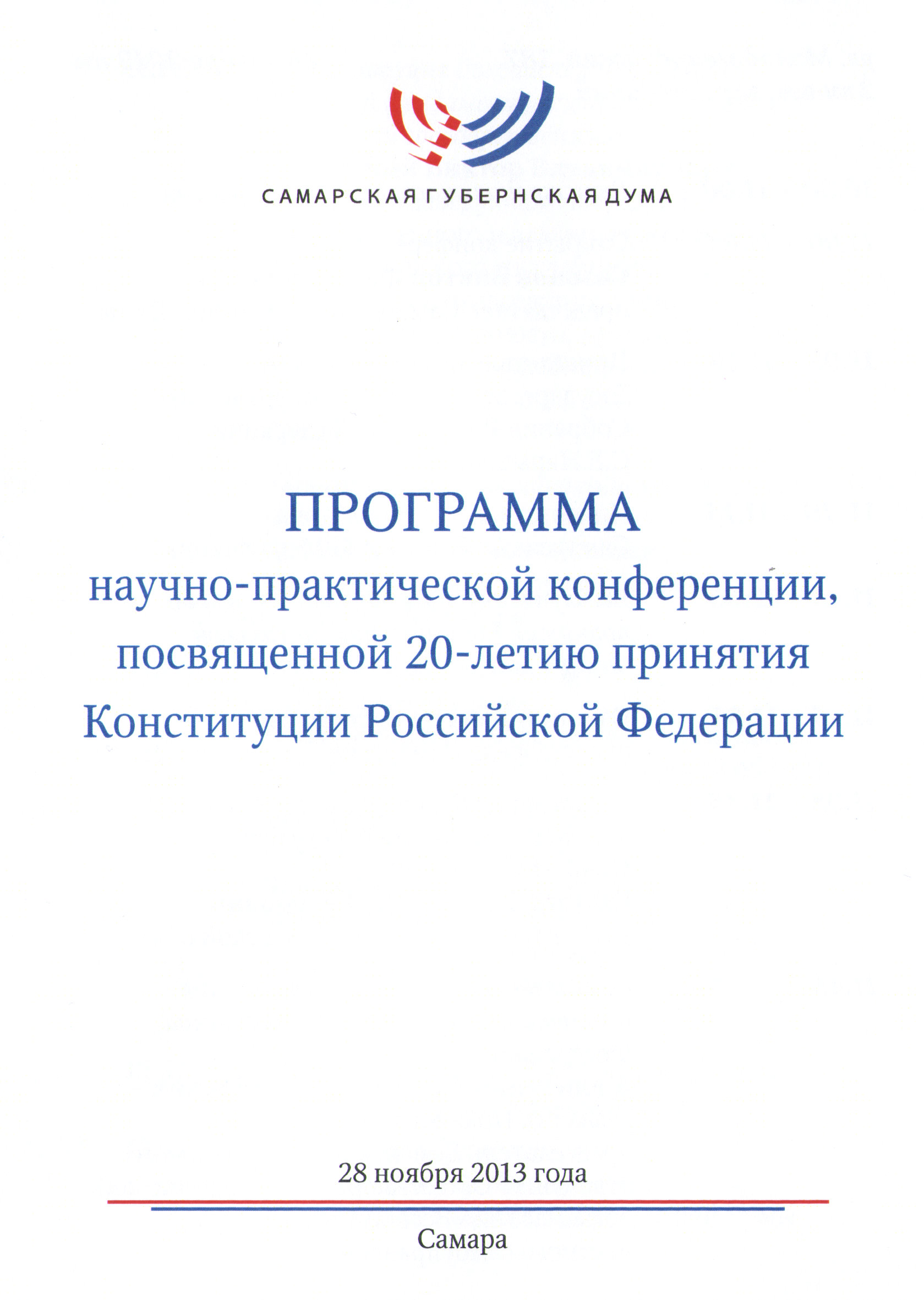 28 ноября в Самарской Губернской Думе прошла научно-практическая конференция, посвященная 20-летию принятия Конституции Российской Федерации. В мероприятии приняли участие председатель Самарской Губернской Думы Виктор Сазонов, вице-губернатор Дмитрий Овчинников, депутат Государственной Думы Виктор Казаков, заместитель прокурора области Александр Галузин, депутаты Губернской Думы, главы городов и районов области, представители общественных организаций, сотрудники правоохранительных органов, представители судейского сообщества и прокуратуры, ученые, студенты.