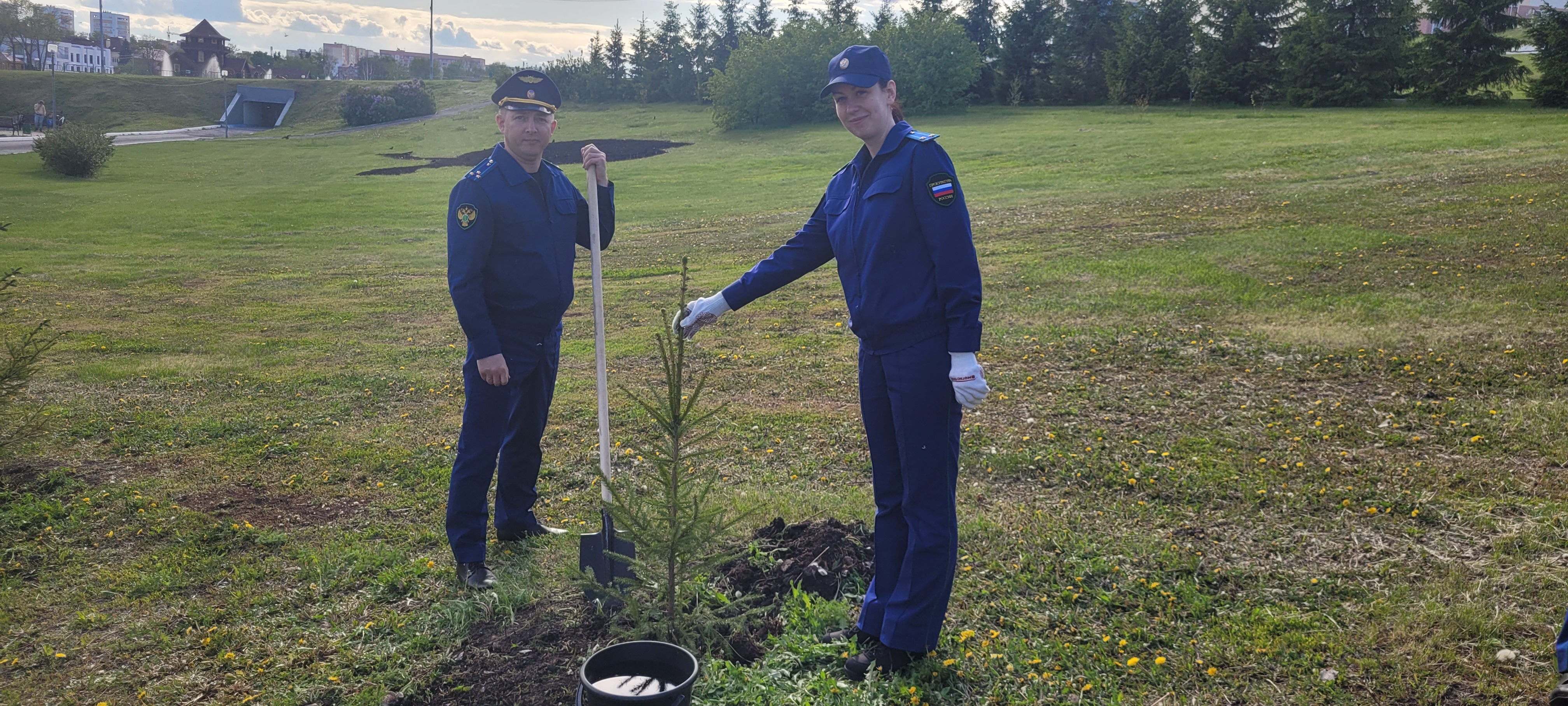 Работники прокуратуры высадили деревья на аллее, заложенной в честь 300-летия российской прокуратуры