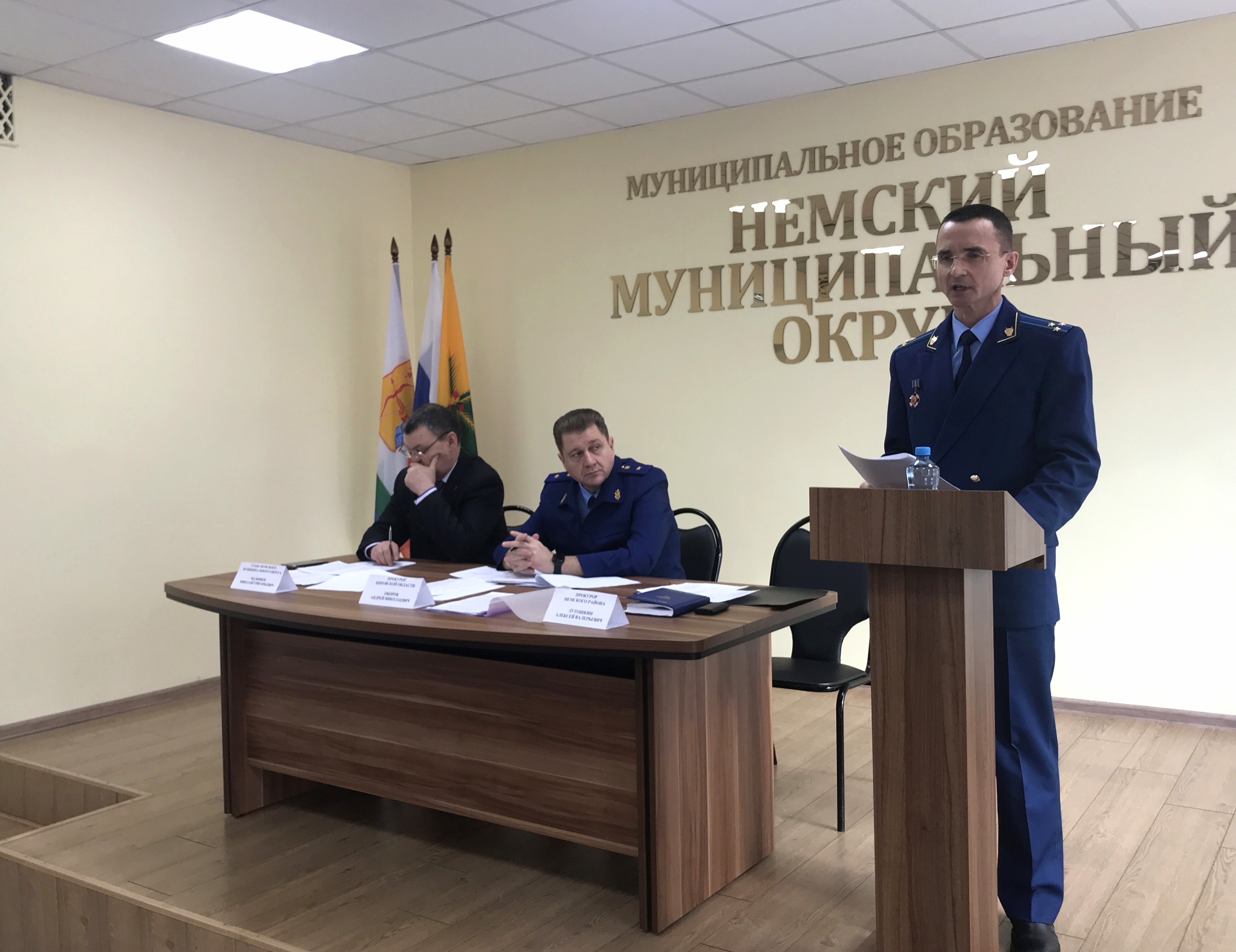 Прокурор Немского района Алексей Лутошкин выступил с оценкой деятельности органов местного самоуправления, органов правоохраны, результатами прокурорского надзора в сфере профилактики преступности, при реализации национальных проектов, региональных программ.