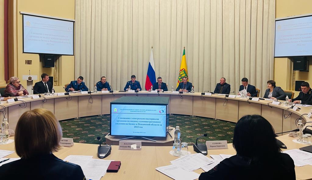 Первый заместитель прокурора Пензенской области Александр Лейзенберг 26.10.2023 принял участие в расширенном совещании Уполномоченного по защите прав предпринимателей в Пензенской области с руководителями контрольных (надзорных) органов по вопросам административной нагрузки на бизнес в 2022 году.