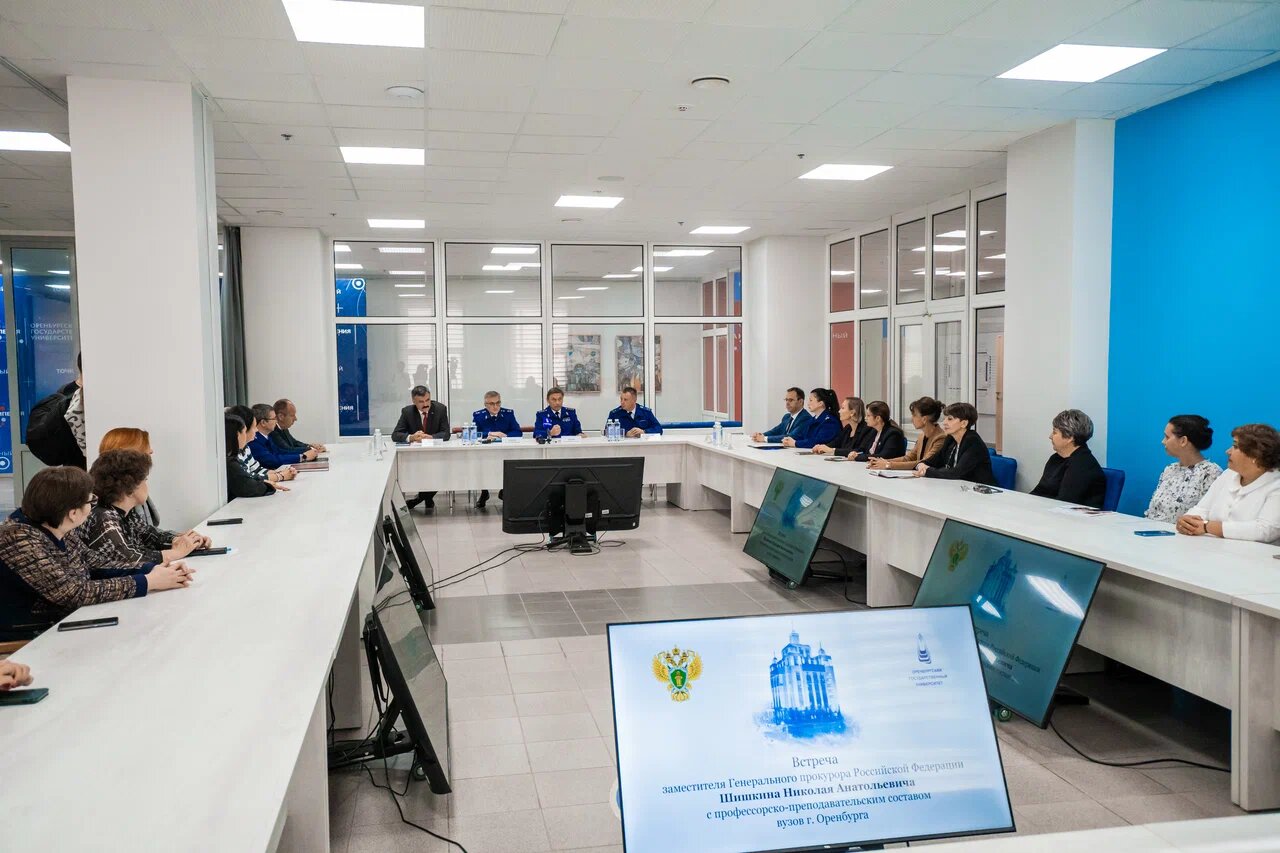 Сегодня, 12 сентября 2023 г., по поручению Генерального прокурора Российской Федерации заместитель Генерального прокурора Российской Федерации Николай Шишкин в рамках рабочей поездки в г. Оренбург на базе федерального государственного бюджетного образовательного учреждения высшего образования «Оренбургский государственный университет» встретился с профессорско-преподавательским составом высших учебных заведений Оренбургской области, осуществляющих подготовку будущих юристов.