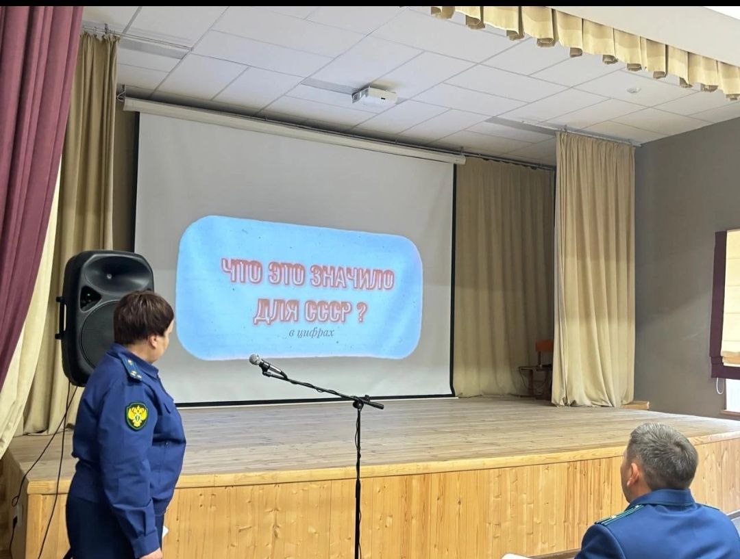 Ветеран прокуратуры Ирина Петрова рассказала учащимся о том, какие потери понесла страна в годы войны, представив видеоролик, который подчеркивает важность сохранения памяти о подвиге наших предков.