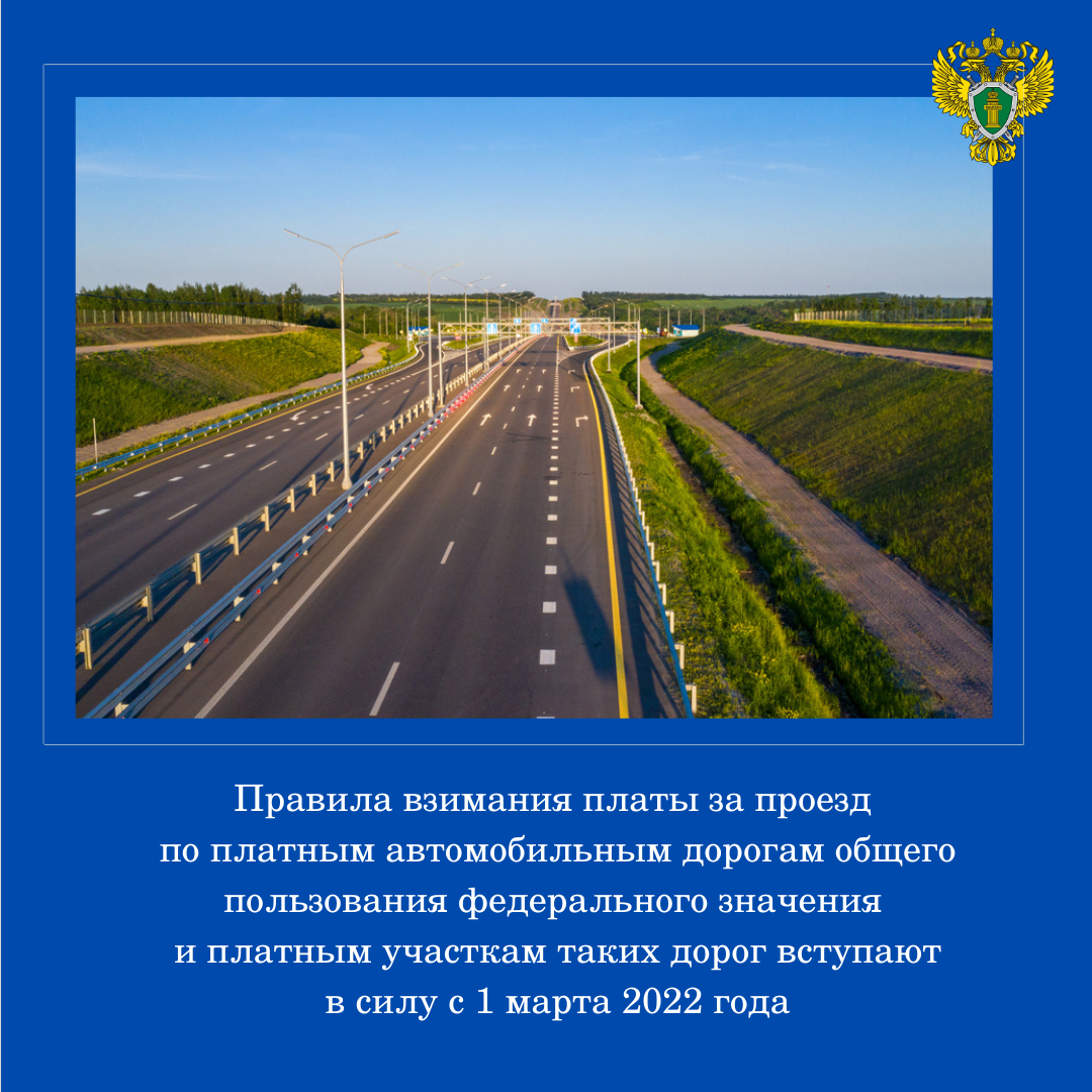Правила взимания платы за проезд по платным автомобильным дорогам общего пользования федерального значения и платным участкам таких дорог вступают в силу с 1 марта 2022 года