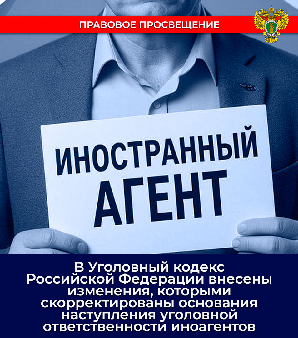 В Уголовный кодекс Российской Федерации внесены изменения, которыми скорректированы основания наступления уголовной ответственности иноагентов