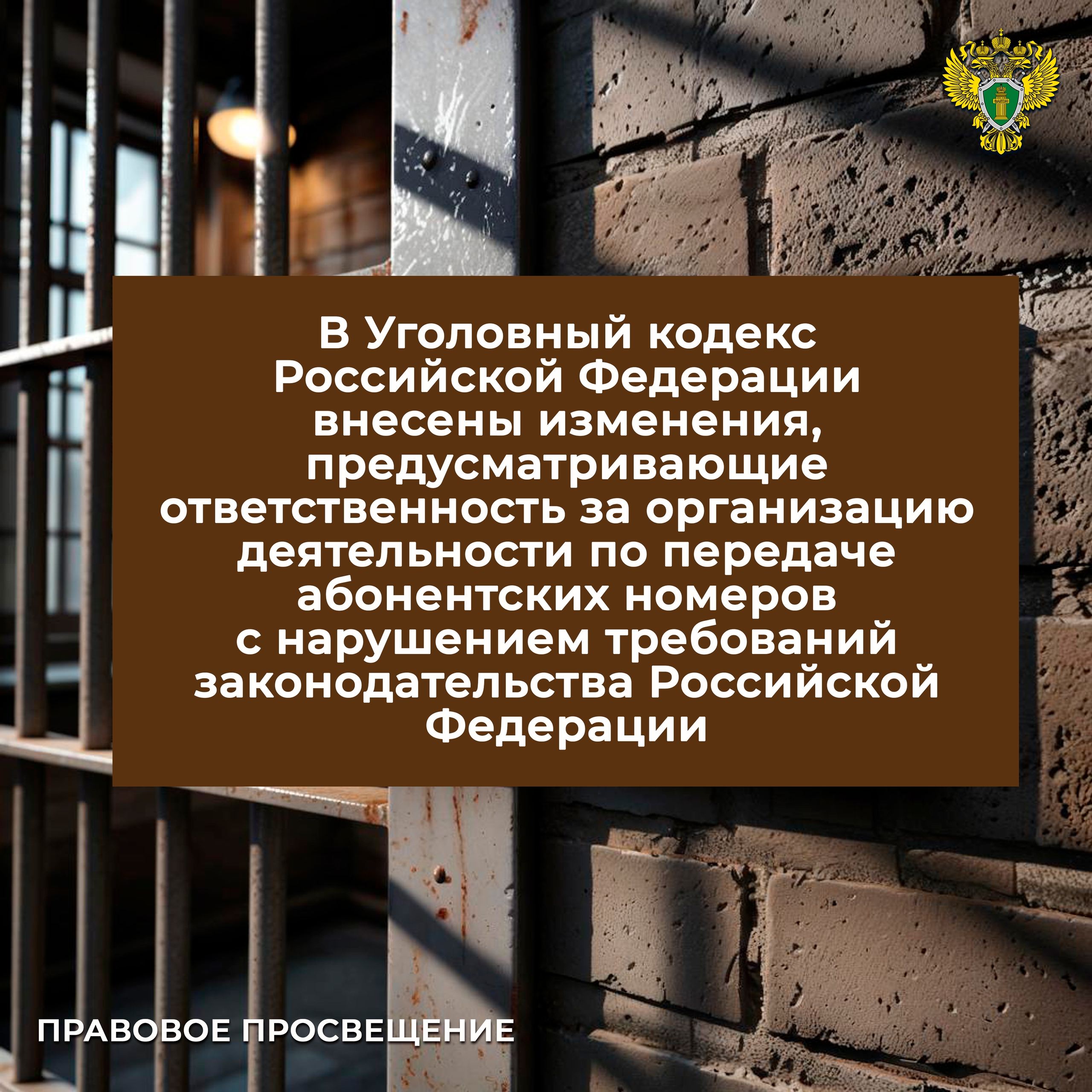 В Уголовный кодекс Российской Федерации внесены изменения, предусматривающие ответственность за организацию деятельности по передаче абонентских номеров с нарушением требований законодательства Российской Федерации